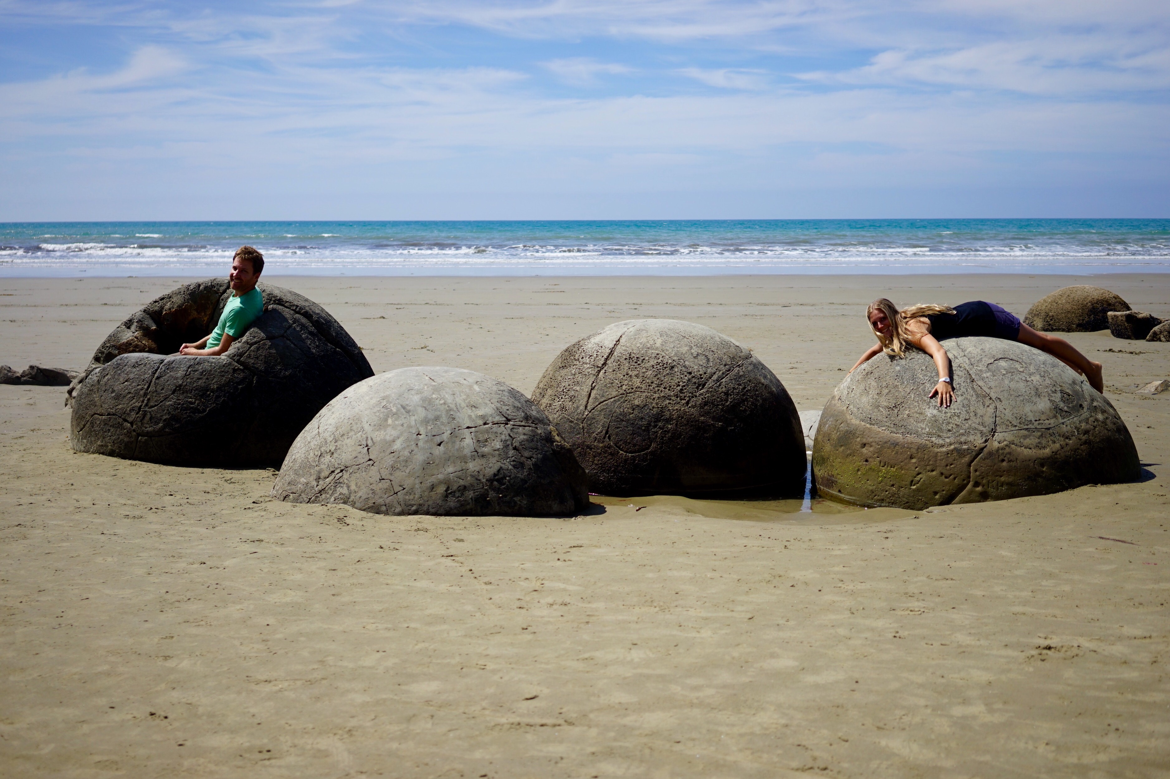 Nach 11 Tagen auf der Nordinsel wagten sich Steffi & Pauli auf die Südinsel von Neuseeland. Diese ist weitläufig und nur spärlich besiedelt. Es leben hier vor allem Schafe, viele Schafe. Der grandiose Auftakt der Expedition Südinsel bildete der ‚Farewell spit‘ ganz im Norden. Auf der Karte sieht dieser schmale Landstreifen wie der Schnabel eines Kiwis aus, des Nationalvogels Neuseelands. Besonders beeindruckte die zwei Abenteurer, dass sie hier völlig alleine waren, weit und breit waren keine anderen Menschen in Sicht, nur Möwen, viele Möwen. Auch die markanten Felsformationen haben es Steffi & Pauli angetan. Beim Besuch des Wahrariki Beach und dessen Symbol, ein Felsenloch, welches dem Loch einer Emmentaler-Käsescheibe nachempfunden scheint, gerieten die beiden ins Schwärmen. Oder die nach gehäuften Pancakes aussehenden Felsen in Punaikaki, welche direkt von einem amerikanischen Frühstückstisch abstammen könnten, das sind wahrhaftige Wunderwerke der Natur. Sonst gibts in Neuseeland Hügel, viele Hügel. Bei einem solchen, grösseren Hügel machten Steffi & Pauli die nächste Wanderung und konnten den sich ziemlich schnell zurückbildenden Gletscher Franz-Josef aus knapp 750 m Distanz begutachten. Trotz der schwindenden Grösse besticht dieser Gletscher immer noch durch seine imposante Erscheinung. Da am 8. Februar das chinesische Neue Jahr begonnen hat, wirkte sich dies unweigerlich auch auf die Anzahl der anwesenden Touristen aus. Steffi & Pauli kamen so unverhofft in Kontakt mit Chinesen, vielen Chinesen. Dank Pauli’s Grundkenntnissen in Mandarin konnten die kulturellen Barrieren schnell überwunden werden und es entstanden oftmals lustige Konversationen in Chin-Englisch, so auch auf der Reittour durch Mittelerde. Genau wie Gandalf konnten Steffi & Pauli jedoch nicht nach Isengard reiten. Es war eher wie im Rapperswiler Kinderzoo, wo sich die Rössli schön im Reiheli bewegen, ohne grosses Zutun des Reiters. Ein Spass war es trotzdem, denn die Touristen aus China bewegten ihre Rössli immer mal wieder aus der Reihe, natürlich unabsichtlich. Genau deshalb verzweifelte die Führerin fast und versuchte ziemlich energisch eine gewisse Ordnung wiederherzustellen. Auch bei diesem Abenteuer wurde besonders Pauli des Öfteren Opfer der Sandfliegen, vieler Sandfliegen. Die lästigen Stiche schmerzen während den ersten 30 Minuten ziemlich intensiv. Nur ‚Anti Brumm Forte‘ konnte den fiesen kleinen Tierchen Paroli bieten. Am zweitletzten Tag erreichten die zwei Kilometersammler Christchurch, die grösste Stadt der Südinsel war gleichzeitig die letzte Station in Neuseeland. Das City Centre von Christchurch ist wohl eine der grössten Baustellen der Welt, denn die Auswirkungen des schweren Erdbebens vom Jahre 2011 sind besonders im Zentrum noch deutlich sichtbar. Viele einsturzgefährdete grössere Gebäude müssen ausserdem erst noch abgerissen oder renoviert werden. Trotzdem konnten Steffi & Pauli auch hier einiges bewundern, etwa Bauarbeiter, viele Bauarbeiter. Das letzte stärkere Erdbeben fand übrigens am 14. Februar statt, 2 Tage vor Steffi’s & Pauli’s Anreise. Die zwei Reisenden haben davon allerdings nichts bemerkt und wurden erst durch Meldungen aus der Schweiz darauf aufmerksam. Ausgeschlafen und damit bereit für neue Abenteuer machten sich Steffi & Pauli am nächsten Morgen auf den Weg ins Land der Känguruhs.