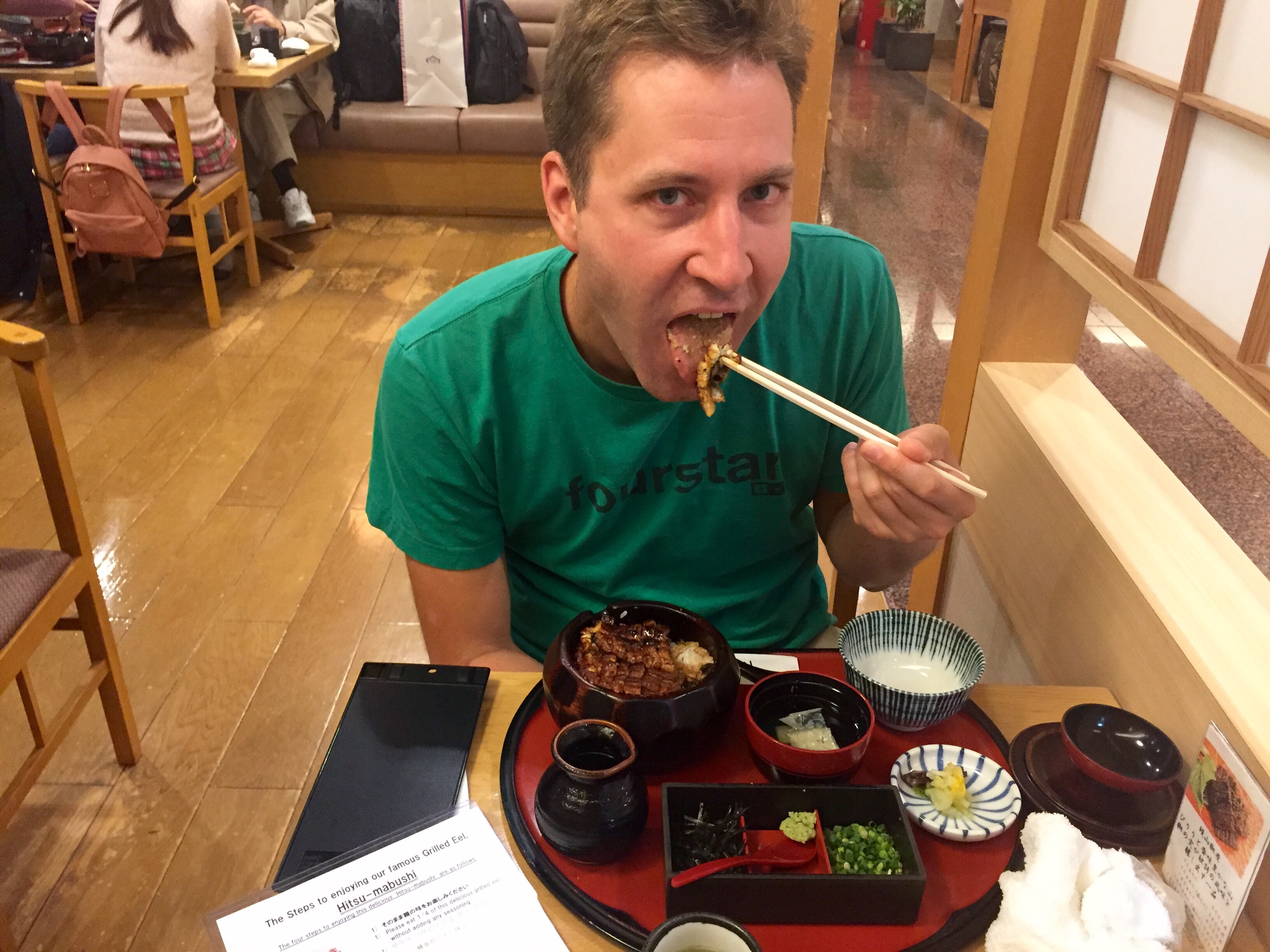 Als der Shinkansen noch in weit entfernter Zukunft lag, Sushi sich langsam als Alltagsgericht zu etablieren begann und die Hauptstadt noch Edo hiess, wurde unter anderem der Nakasendo als wichtige Verbindungsroute zwischen Kyoto und der Hauptstadt benutzt. Da sich Steffi & Pauli derzeit in Richtung Tokyo bewegen, durften sie sich auf ihrer Reise ein kleines Teilstück dieses immer noch gut erhaltenen Pflastersteinwegs natürlich nicht entgehen lassen. So bekamen sie nicht nur einen interessanten Einblick in die längst vergangene Edo-Zeit, sondern trafen zufälligerweise auch auf die ziemlich scheuen Japanmakaken, auch bekannt als Rotgesichtsaffen. Dass ihnen auch noch ein Bär über den Weg lief, schien eher unwahrscheinlich, denn die zahlreichen Glocken, welche zwecks Warnung entlang des Weges aufgestellt sind, wurden von Pauli immer sehr ausgiebig getestet. Als Lehrperson ist sich Steffi den Umgang mit Kindern ja bestens gewöhnt. So konnten die beiden auch den Besuch in das Eisenbahnmuseum von Nagoya und die Toyotawerke von Toyota wagen. Denn die herausgeputzten Lokomotiven und Waggons aus früheren und modernen Zeiten, der detaillierte Einblick in den Aufbau eines Shinkansen oder die Präsentation der technisch anspruchsvollen Magnetschwebebahn Maglev schienen auch in diesem Fall das Kind in Pauli zu wecken. Steffi’s geduldiger Art sei Dank, dass Pauli fast die gesamte Ausstellung anschauen durfte. Nicht nur die Eisenbahn spielt eine wichtige Rolle in der Bewältung des japanischen Verkehrs, auch die Autoindustrie ist mit globalen Herstellern sehr präsent. Nirgends auf der Welt ist die Prius-Dichte wohl höher als in Japan. Nicht zuletzt aus diesem Grund wählten Steffi & Pauli die Toyota-Werke für eine Fabrikbesichtigung aus. Eine übers ganze Gesicht strahlende Japanerin begrüsste die rund 30 aus verschiedenen Erdteilen stammenden Teilnehmerinnen und Teilnehmer. Auf der Tour wurden nicht nur nackte Zahlen vorgelegt, sondern vor allem auch interessante Einblicke in die bis aufs Detail einstudierten Fertigungstechniken gewährt. Toyota gilt nicht umsonst als ein Meister der Effizienz. So arbeiten in Teilen der Anlage praktisch ausschliesslich Roboter, doch für den Ein- und Zusammenbau und die abschliessende Inspektion sind glücklicherweise immer noch Menschen zuständig. Da die Tourleiterin Mühe hatte mit der Ausprache des englischen R und stattdessen ein L verwendete, ergaben sich manchmal sehr amüsante Situationen. So zum Beispiel als sie ein Fertigungsverfahren anhand des Modells ‚Crown‘ vorstellte. Doch genau dies liess die ausgezeichnet eingebübten und daher oftmals roboterartigen Sätze sehr symphatisch daherkommen. Von den Touren, Erlebnissen und Eindrücken hungrig geworden, probierten sie am Abend die regionale Spezialität von Nagoya: Unagi respektive Aal auf Reis, mmmmmh!