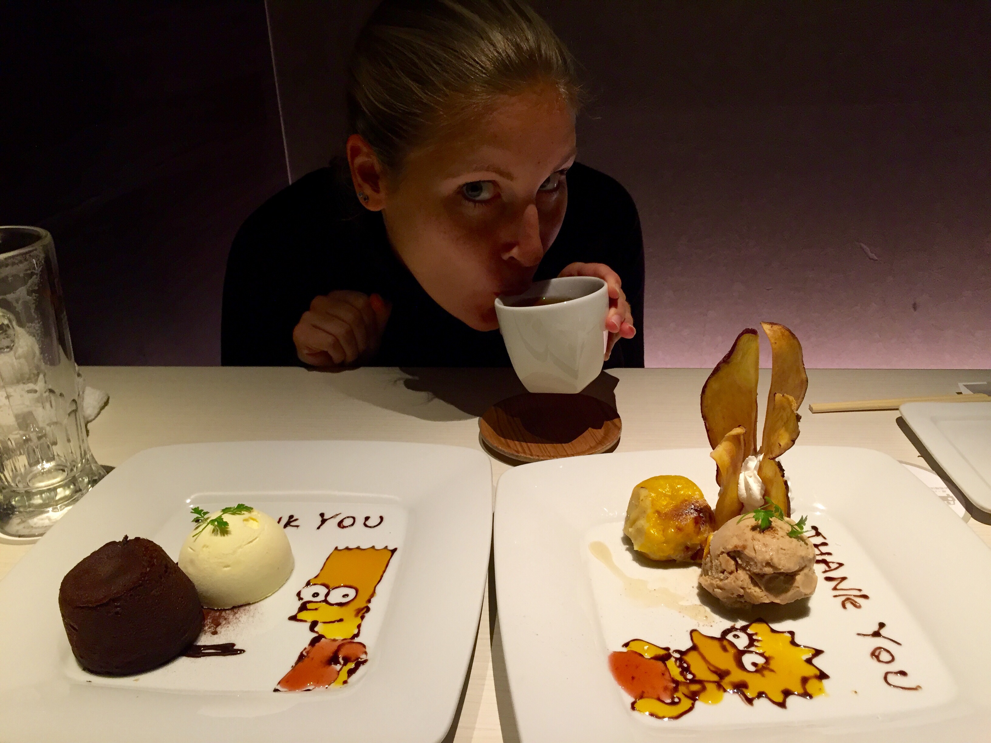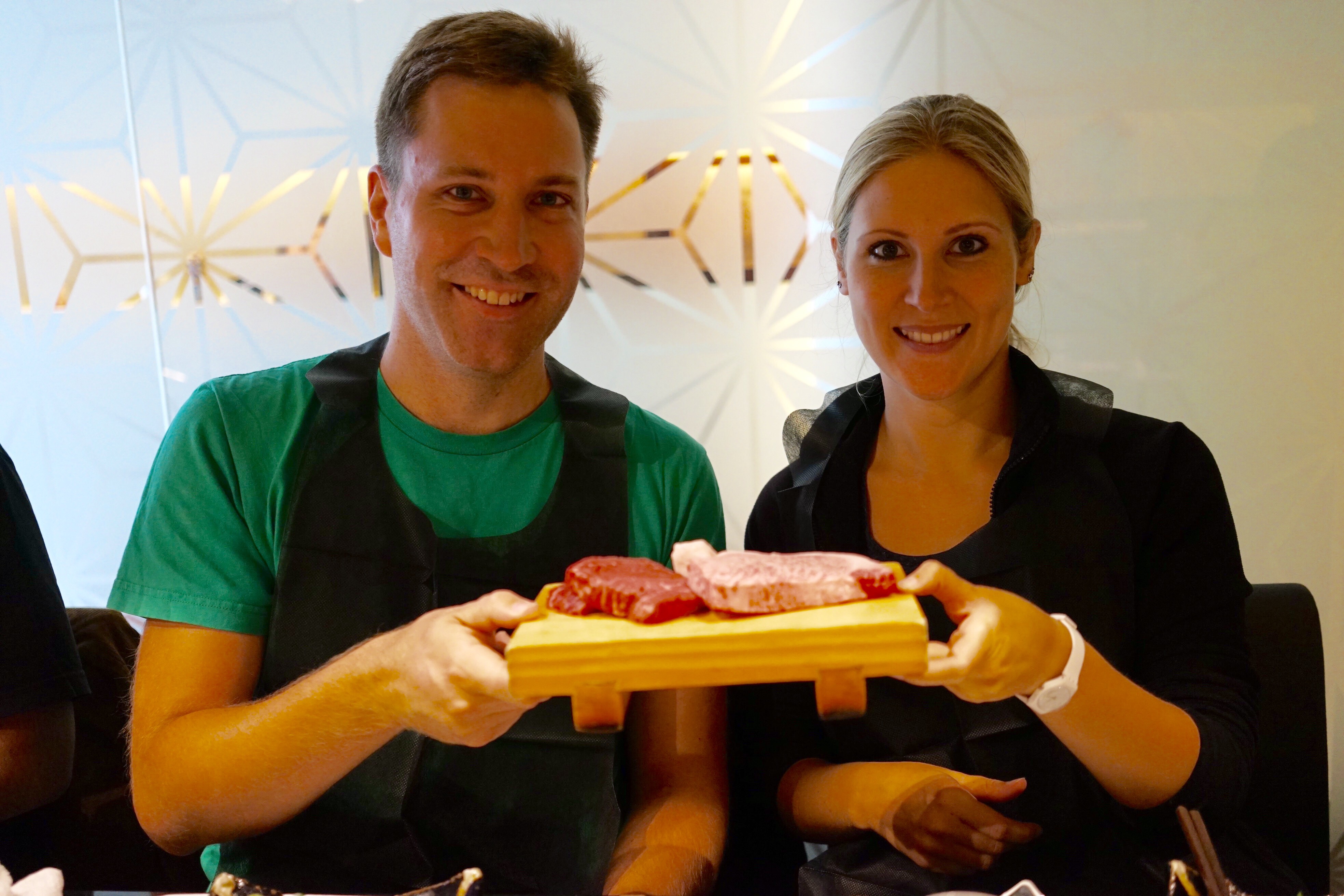 Nur schon der Gedanke daran löst bei so manchen Fleischliebhabern einen höheren Pulsschlag aus, so auch bei Pauli. Die Pflanzenfresserin Steffi hingegen bleibt ganz cool wenn das Stichwort Kobe fällt. Die Rede ist von Kobe-Beef, das wohl mit Abstand teuerste Fleisch weltweit. Ob der Geschmack den Preis erträglich macht oder diesen sogar übertrifft, galt es für Steffi & Pauli im Rahmen ihres Kobe-Besuchs herauszufinden. Für diesen ‚Test‘ wählten sie am Donnerstagabend das gemäss TripAdvisor beste Teppanyaki-Restaurant aus. Mit Schrecken stellten die zwei allerdings fest, dass der Preis für ein ‚Dinner für zwei‘ weit über ihrem Budget lag. Kurzerhand beschlossen sie deshalb ins Restaurant ‚Bistrot Cafe de Paris‘ auszuweichen. Im Quartier Kitano ist der europäische Einfluss spürbar. Von Emmanuel, dem Besitzer dieses kleinen Bistros, wurden sie denn auch gleich mit ‚Bonsoir‘ begrüsst. Die französische Hintergrundmusik und die authentische Dekoration versetzte die beiden sofort in ein Pariser Strassencafé. Nach kurzem Smalltalk setzte sich Emmanuel zum einzigen anderen Gast an diesem Abend. Manchmal gibt es wirklich unglaubliche Zufälle, denn dieser Gast war der ehemalige Schweizer Generalkonsul Daniel A. Sofort entwickelte sich ein interessantes und längeres Gespräch, mal auf französisch, mal auf deutsch. Schon während dem Znacht lud Daniel die zwei zu sich nach Hause ein. Zu dritt schlenderten sie anschliessend die Gassen entlang und erreichten schon nach kurzer Zeit Daniel’s Wohnung respektive wie sich kurz darauf herausstellte, Daniel’s Museum. Mit viel Leidenschaft erklärte er praktisch jedes Gemälde und jeden Gegenstand seines ‚Museums‘ und lieferte die spannendsten Geschichten darüber. Einfach unglaublich, welche Erfahrungen Daniel in seinem Leben machte. So erfuhren sie am Beispiel einer zerbrochenen Stuhllehne, dass der Friedensnobelpreisträger Desmond Tutu höchstpersönlich einmal nach dem Anstossen etwas zu stark nach hinten lehnte. Eine von vielen fantastischen Geschichten, welche der immer noch aktive Professor der Kyotoer Universität mit viel Genuss preisgab. Nach drei Stunden Unterhaltung und einer halb leeren Flasche Sake verliessen die zwei immer noch stark beeindruckten Schweizerli den Palast. Das nächste Abenteuer steht aber schon bevor, denn die beiden dürfen auf Einladung von Daniel nächste Woche in einem Tempel übernachten. Aber eigentlich ging es ums Kobe-Beef… Jedenfalls konnte der Eingangs beschriebene Test doch noch durchgeführt werden, denn das am Vorabend ausgewählte Restaurant bot dasselbe Menü auch am Mittag an, einfach zum halben Preis. Zwecks Vergleich entschieden sich Steffi & Pauli für die Qualitätsklassen A5 und A4, die beste und zweitbeste Klasse. Nicht nur das Fleisch war ein absolutes Highlight, der Festschmaus begann schon mit der Zubereitung. Denn der Koch brätelte die saftigen Tranchen direkt vor den Augen seiner Gäste. Zudem erhitzte er auch die zahlreichen Beilagen schwungvoll mit seinen beiden Spachteln. Bis zum Hals gefüllt und überglücklich rollten die beiden knapp 2 Stunden später in die Nachmittagssonne hinaus.