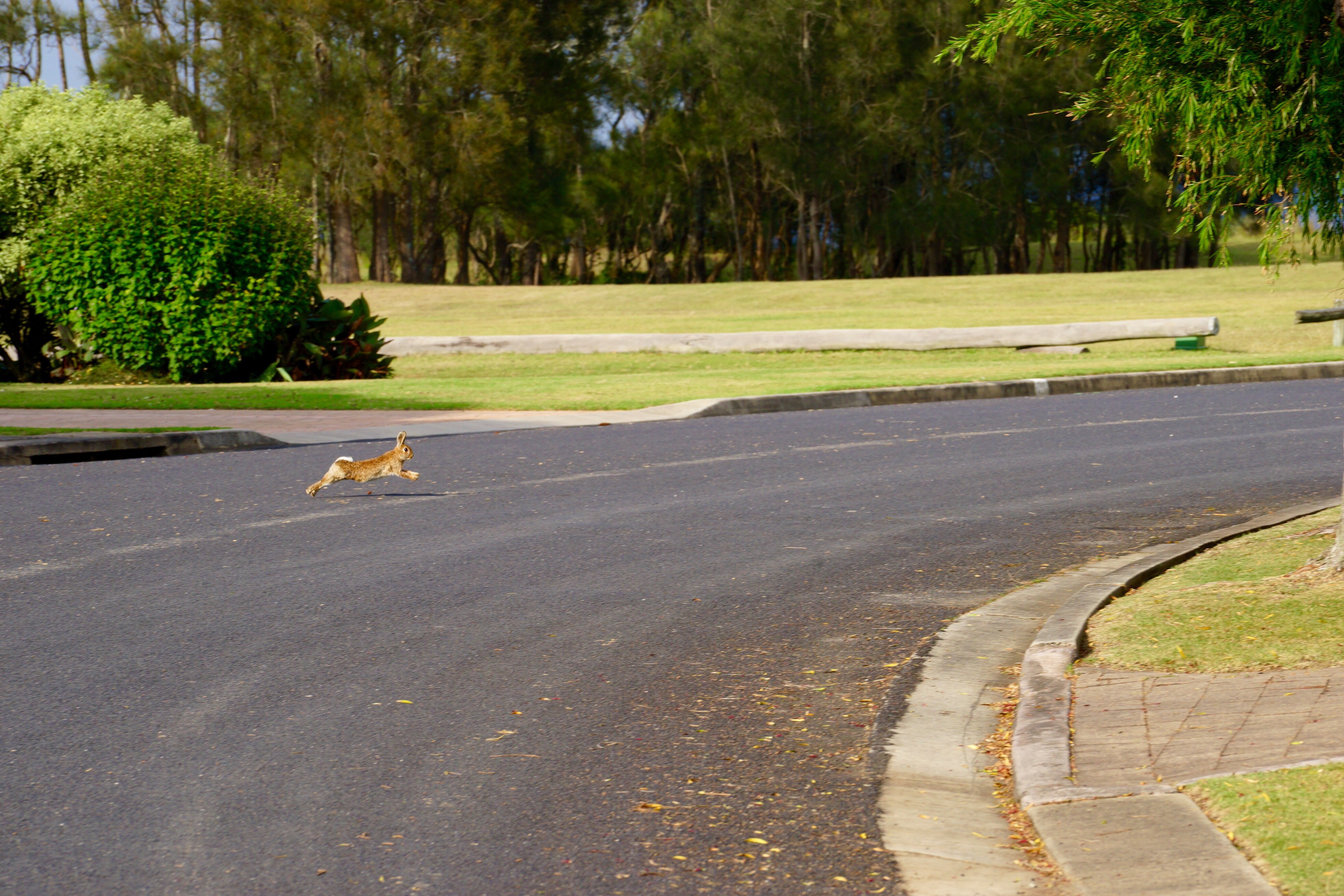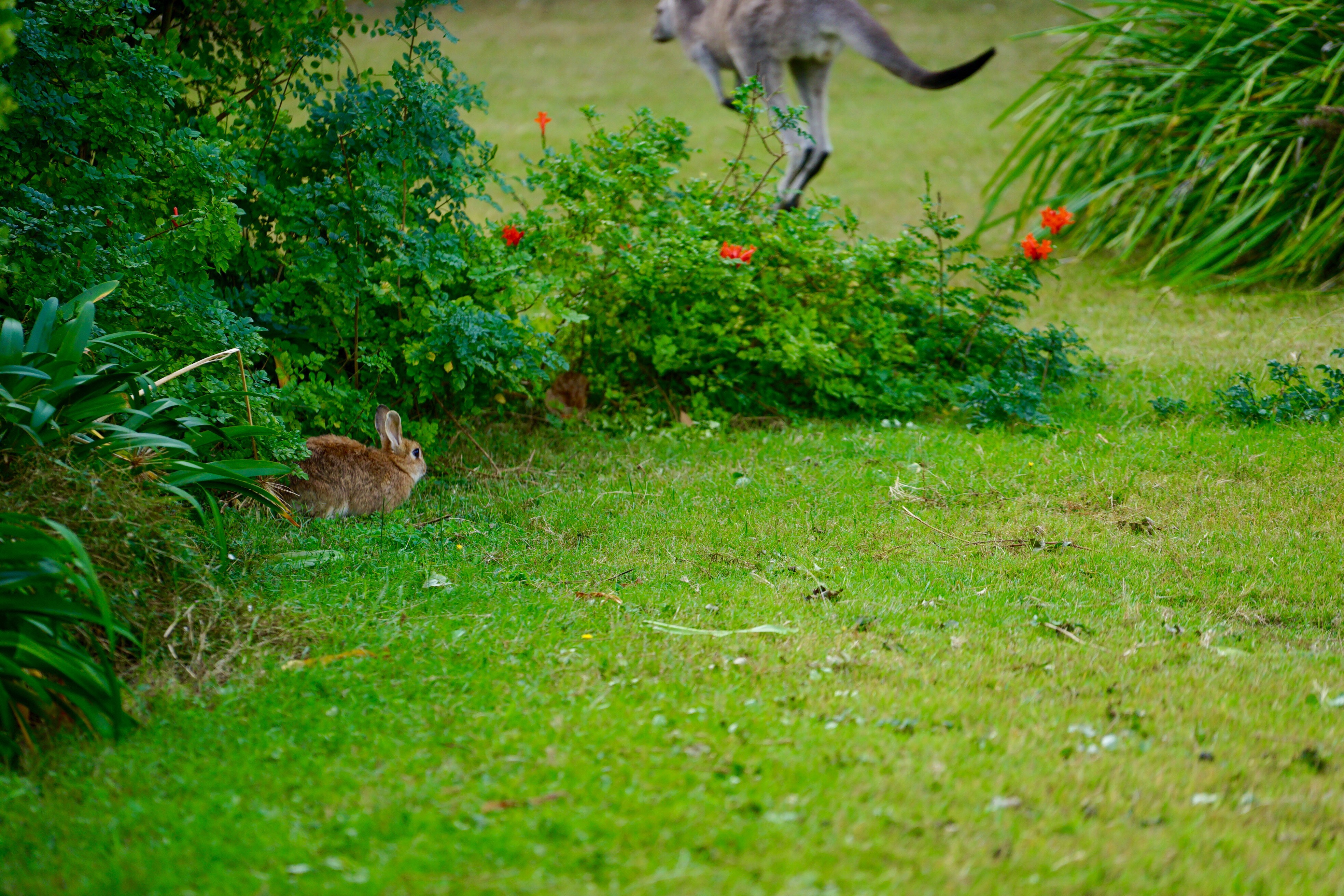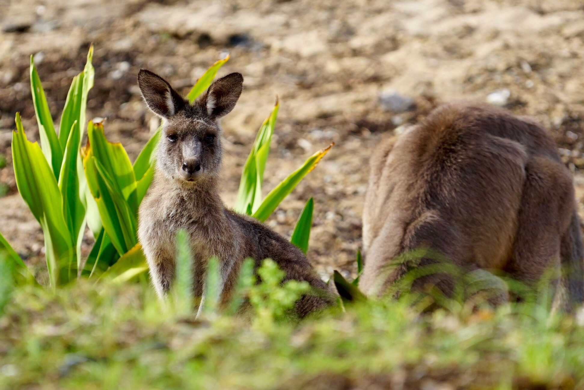 Auch hier am Pebbly Beach äusserst aktiv: Der Osterhase wird bei seiner Arbeit nicht nur von Steffi & Pauli beobachtet, sondern auch von zahlreichen Kängurus.