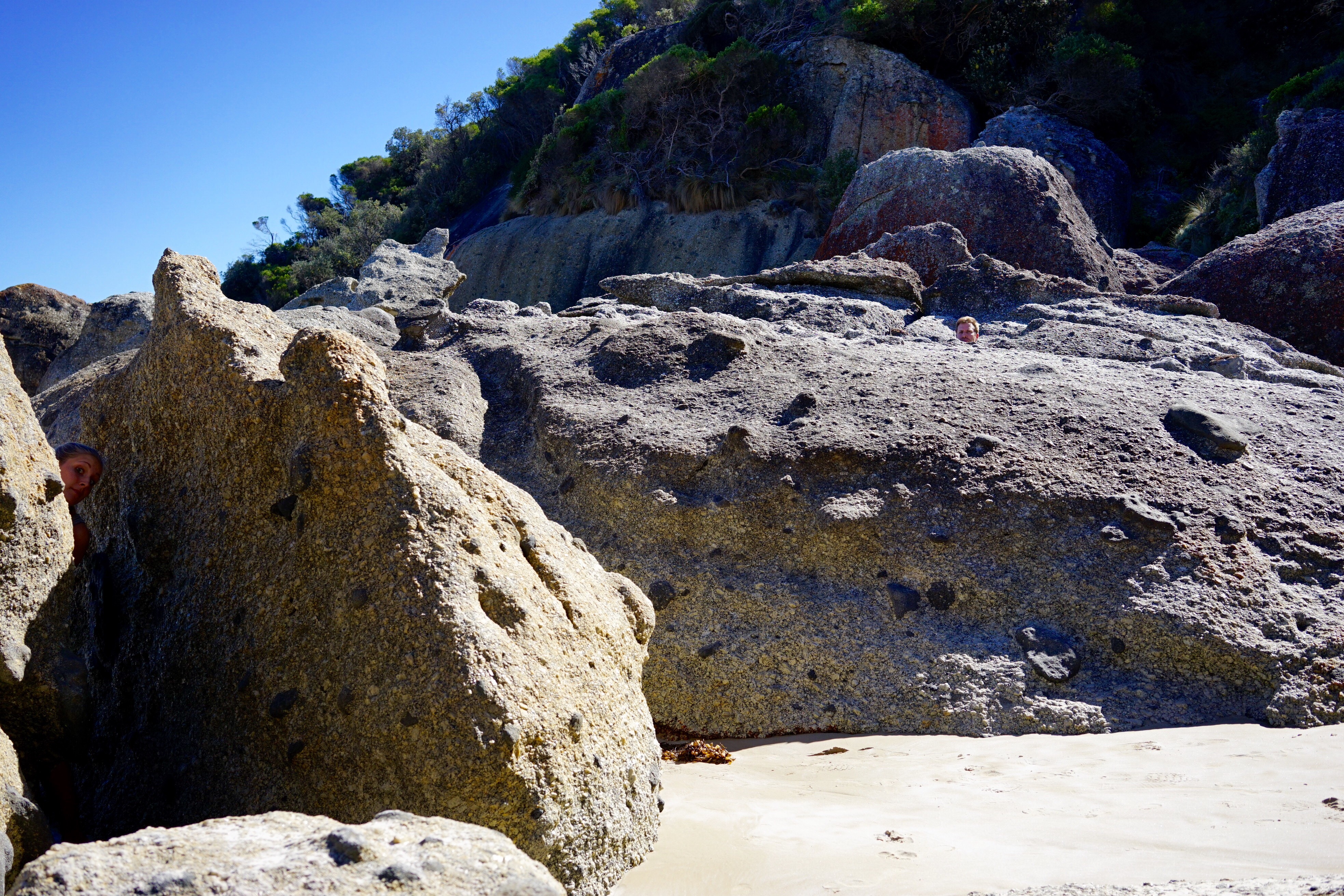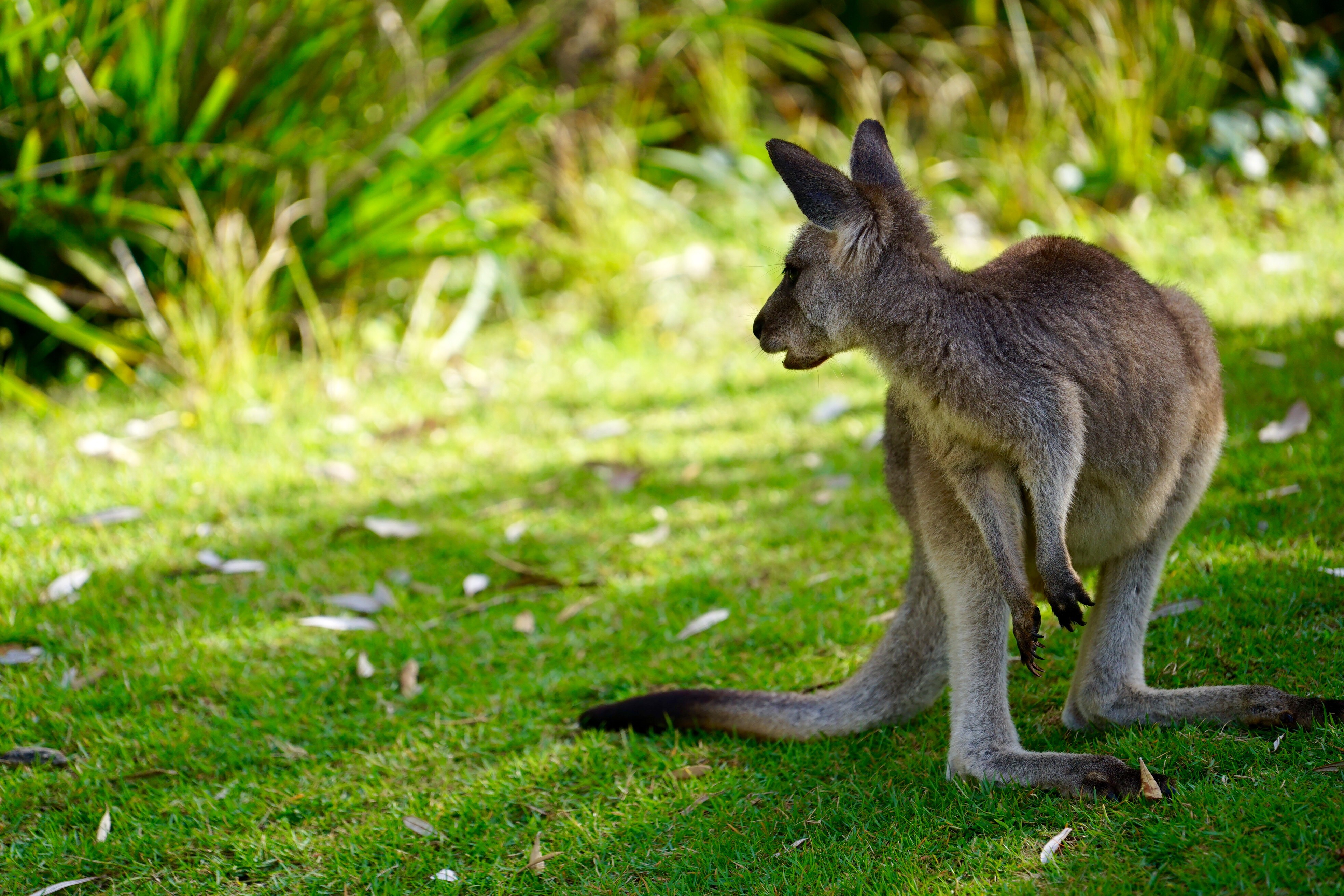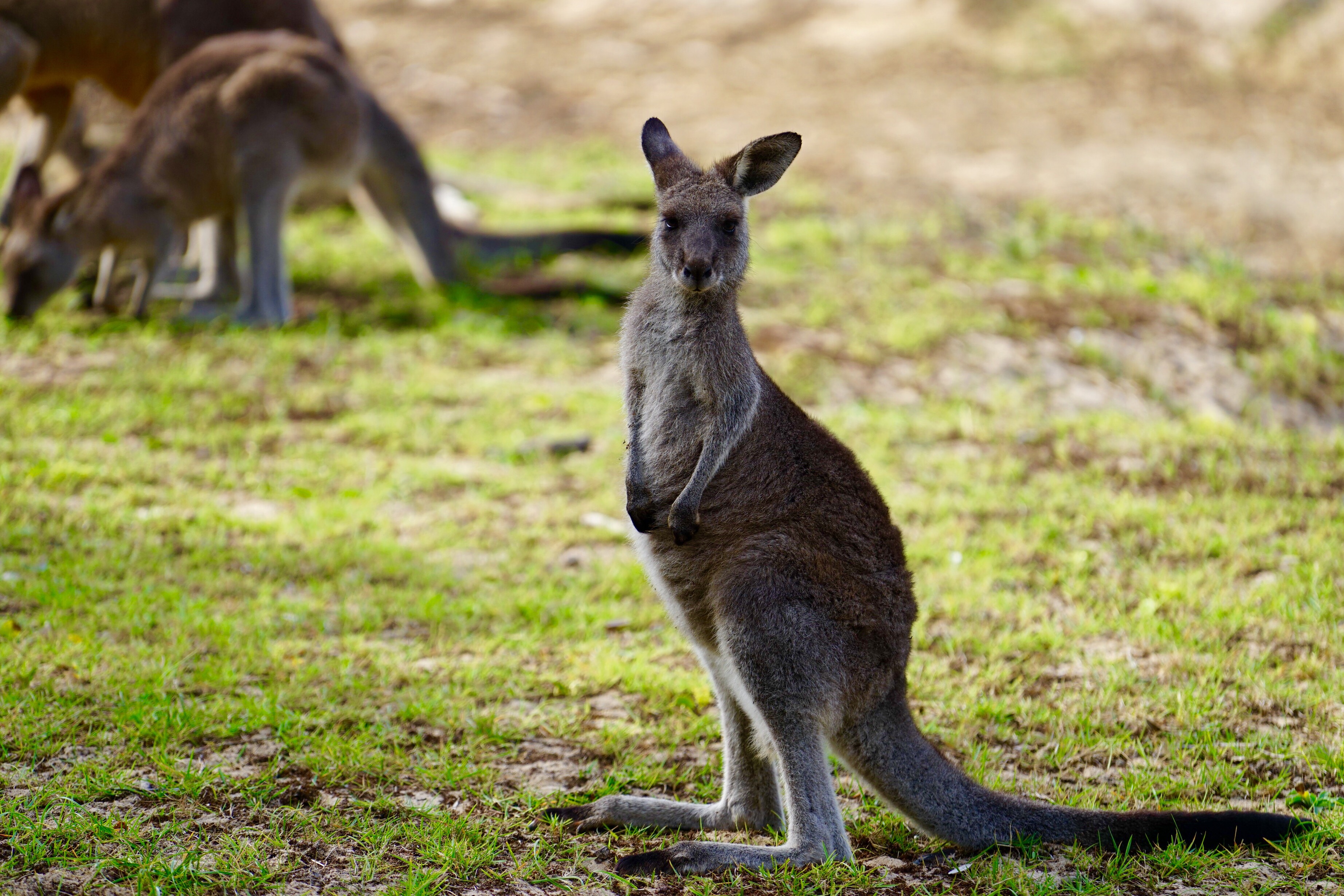 Auch hier am Pebbly Beach äusserst aktiv: Der Osterhase wird bei seiner Arbeit nicht nur von Steffi & Pauli beobachtet, sondern auch von zahlreichen Kängurus.