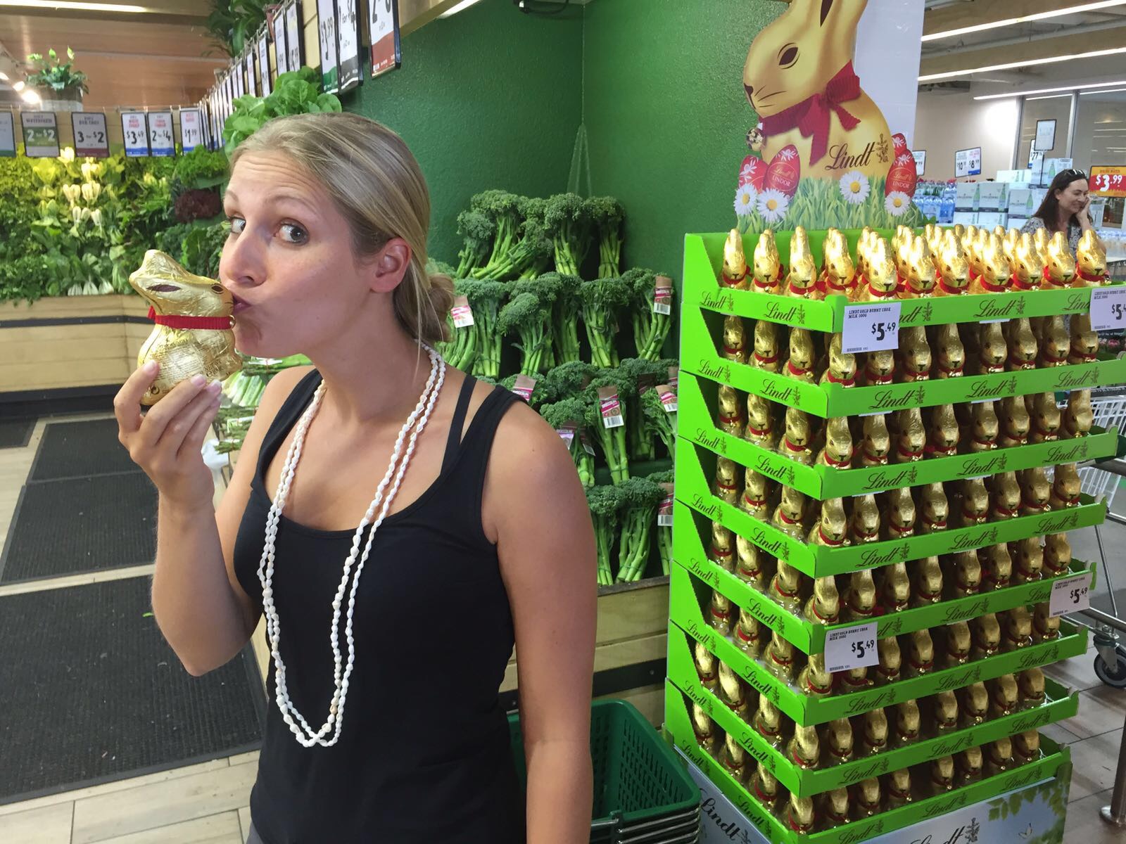 Die bekannten goldigen Osterhasen können überall in Osteralien gekauft werden. Auch Steffi findet dies zum Küssen gut!