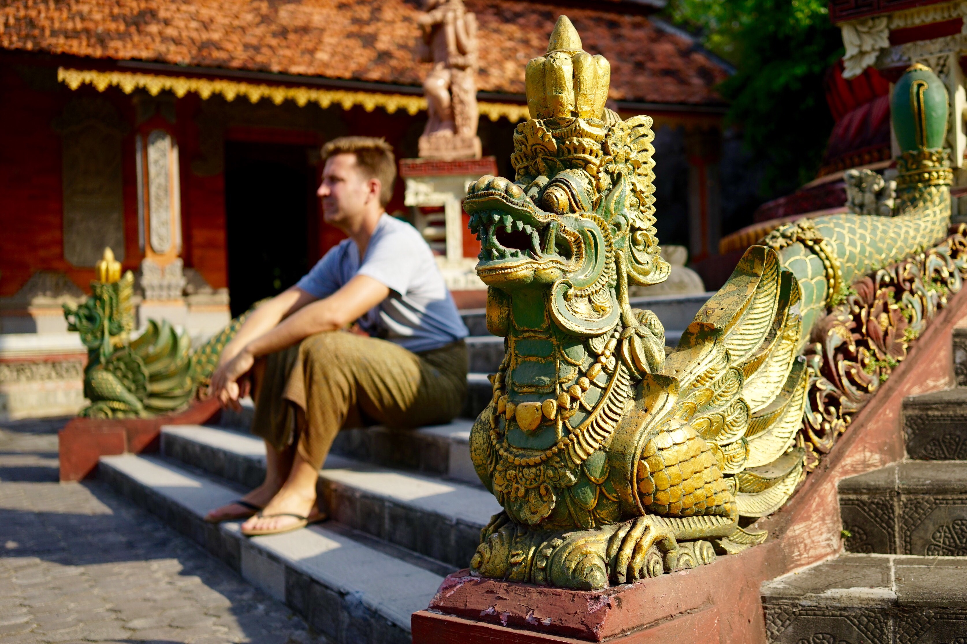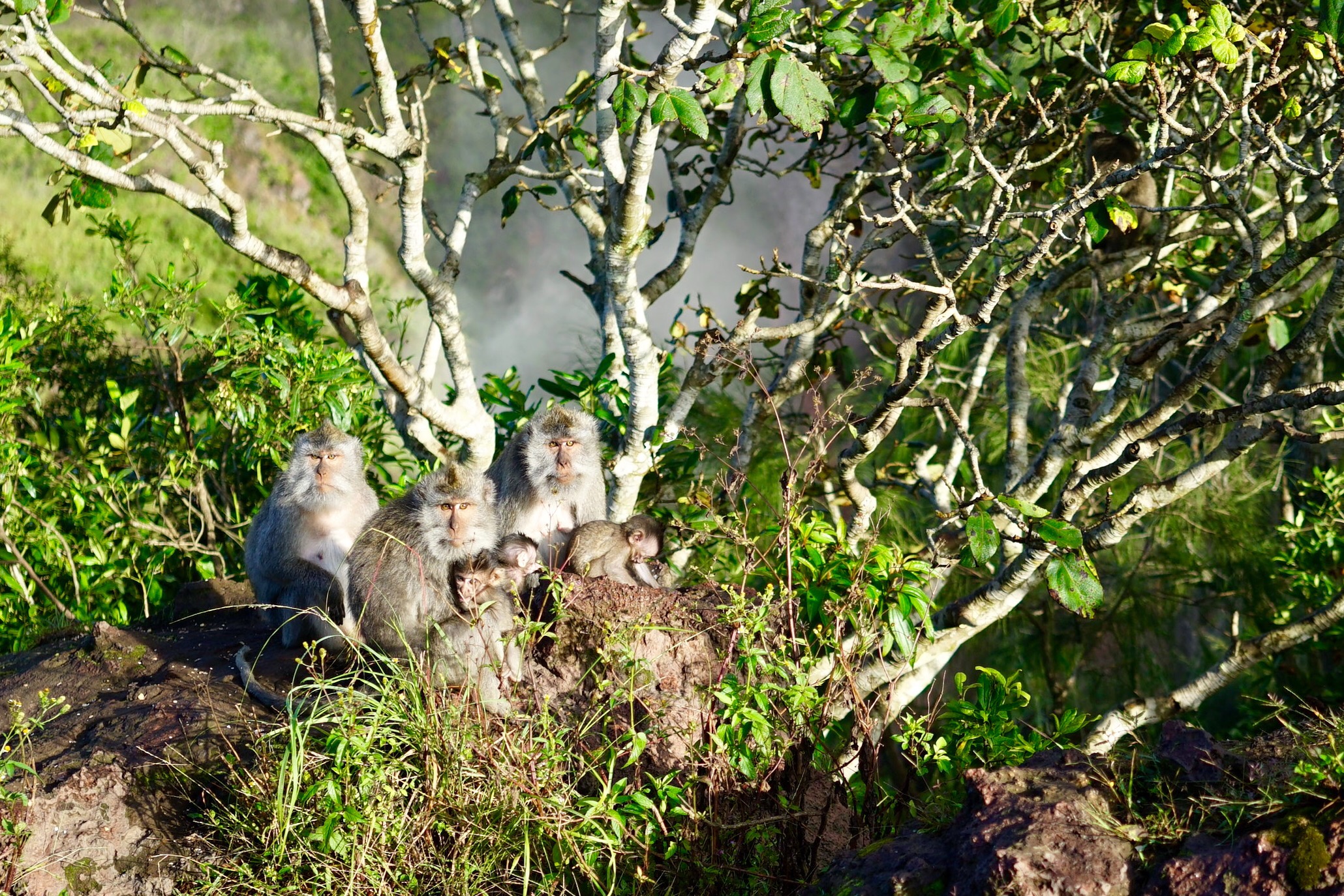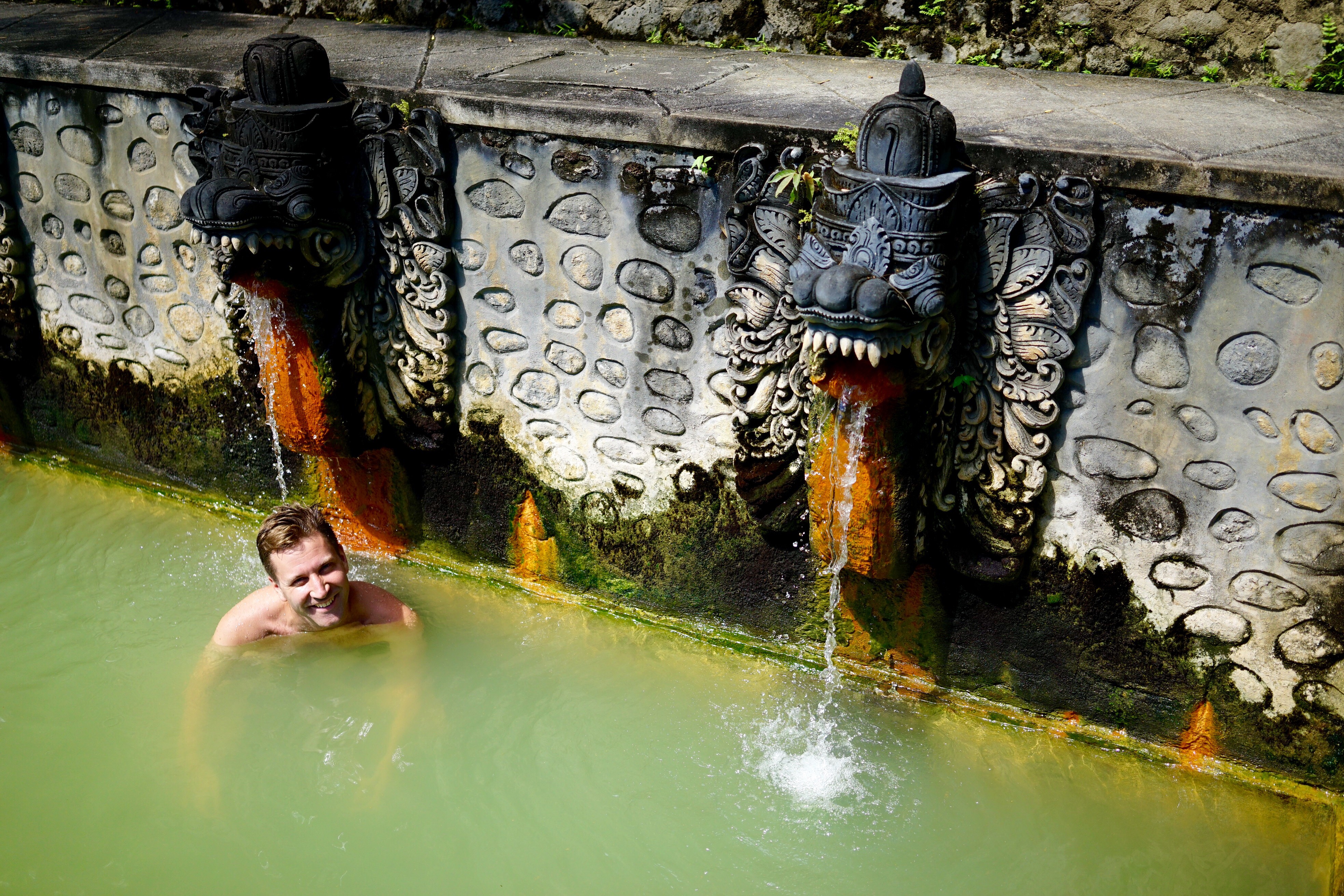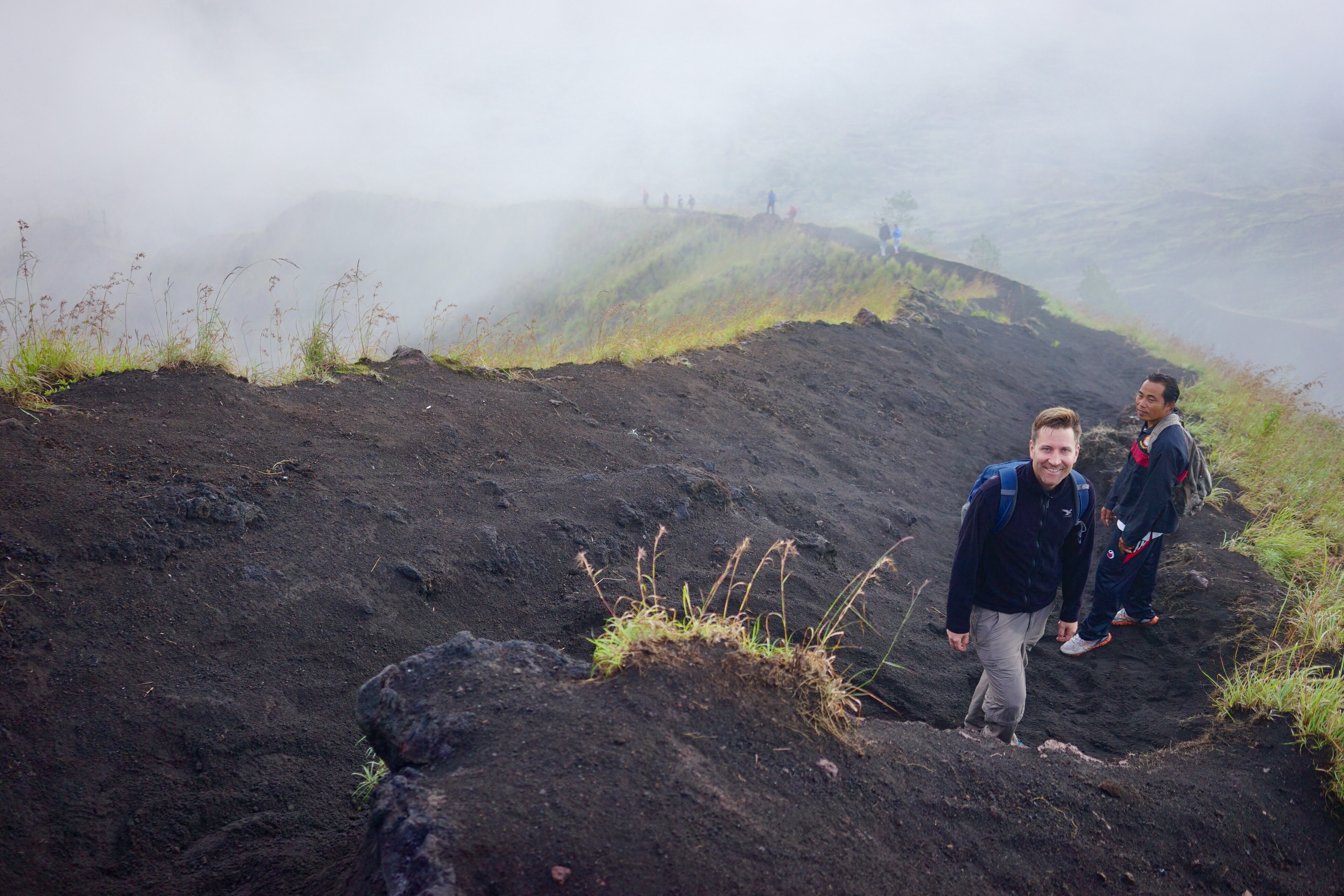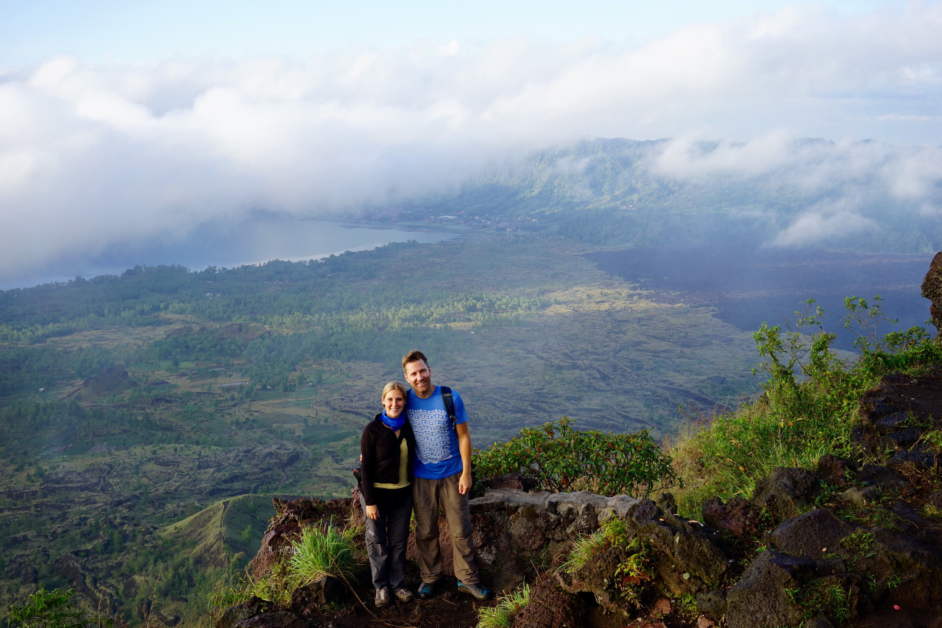 Morgens um 3:15 Uhr klopfte es an der Tür. Aus der leicht kühleren aber immer noch äusserst feuchten Nachtluft erklang Made’s herzliche Stimme: ‚Good morning‘. Selbstverständlich waren Steffi & Pauli darauf vorbereitet und so gings bereits um 3:30 Uhr los in Richtung Gunung Batur, einem aktiven Vulkan auf Bali. Zum ersten Mal seit drei Wochen wurde zu diesem Zweck wieder einmal festes Schuhwerk, sprich Wanderschuhe, montiert. Auf dem sandig-steinigen und teilweise sehr steilen Weg zum 1717 Meter hohen Gipfel war dies von grossem Vorteil, denn der Regen tags zuvor liess eine ziemlich rutschige Unterlage zurück. Von den beiden Schweizerlein erwartete Made natürlich dennoch Bestleistungen. Sein unglaubliches Tempo war sinngemäss atemberaubend. Auch die hohe Feuchtigkeit liess Steffi & Pauli schon nach kurzer Zeit literweise aus allen Poren schwitzen. Nach rekordverdächtigen 2h klatschten sich die drei dann auf dem Gipfel in die glitschigen Hände. Ja, auch Made liess ein paar wenige Schweisstropfen zu. Die Freude hielt jedoch nur kurz, denn es zogen dichte Wolken auf. Das Frühstück, bestehend aus frisch gekochten Eiern (jep, Erdwärme sei Dank) und Kochbananen, musste deshalb ohne Sonnenaufgang genossen werden. Die Natur lässt sich eben nicht kontrollieren, oder doch? In Pemuteran, im Nordwesten von Bali, werden seit knapp 16 Jahren sogenannte ‚Bio Rocks‘ gezüchtet. Auf von menschenhand erstellten Eisenkonstruktionen, welche anschliessend ins Meer gelassen werden, wachsen in wenigen Jahren unterschiedlichste Korallen heran. Mit Hilfe einer tiefen elektrischen Spannung, steigert sich dieser Wachstumsprozess um etwa das 10-fache. Erstaunt stellten Steffi & Pauli fest, dass dieses Projekt gelungen scheint, denn auf, unter und neben den künstlich hergestellten Korallen tummelten sich zahlreiche Fische. Noch bietet die Natur glücklicherweise genügend Alternativen, so auch auf der kleinen Insel Menjangan. Dank Renaud, dem ausgewanderten Jurassier, und seiner Crew gelangten Steffi & Pauli in die Tiefen dieses Korallenparadieses. Eine unglaublich schöne Unterwasserwelt und glasklare Sicht liess die beiden sprachlos durchs Wasser gleiten. Während Steffi in weite Tiefen tauchte, um Fotos aus nächster Nähe zu schiessen, kämpfte Pauli gegen die starke Strömung und den Abfall, welche diese aus Java anströmen liess. Die Säcke seiner Badehose waren bereits nach kurzer Zeit prall gefüllt. Wo genau die zahlreichen Plastiktüten und Becher später landeten, wusste niemand so genau. Sicher scheint jedenfalls nur eines: Abfall ist ein Problem, welches derzeit nur aus westlicher Perspektive existiert. Die lokale Bevölkerung und die Regierung setzen andere Prioritäten. Nicht nur in Form der geografischen Gegebenheiten, sondern auch in gesellschaftlichen Merkmalen zeigen sich die Höhen und Tiefen von Bali. Für Steffi & Pauli geht die Reise nun weiter nach Java in Richtung Jakarta.
