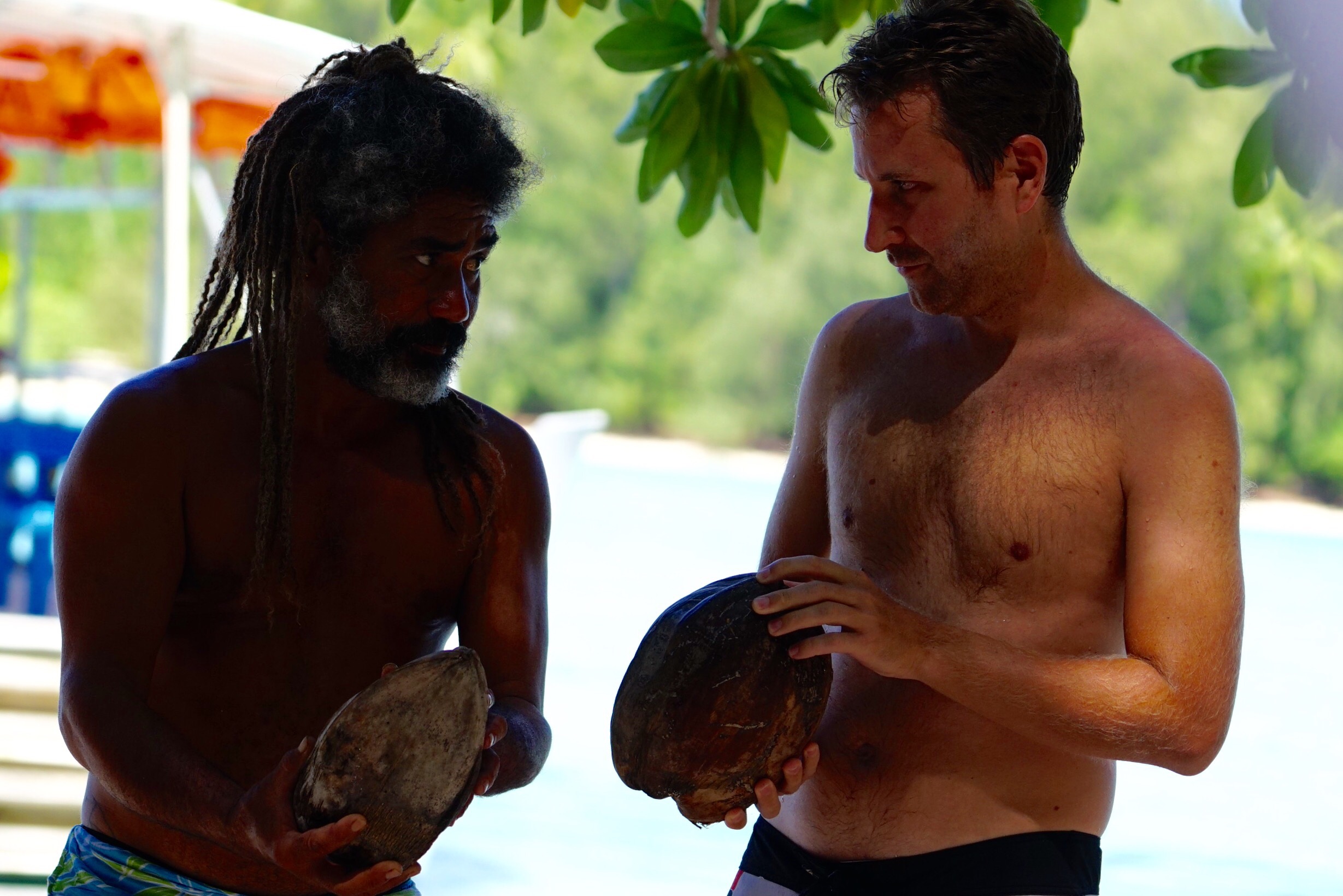 Tahiti, das ist nicht nur die grösste Insel und somit das Zentrum von Französisch-Polynesien, sondern es leben hier wohl auch am meisten Güggel pro Quadratkilometer weltweit. Für Steffi & Pauli sind das völlig neue Hörerlebnisse, für Leila & Patrice, das freundliche Airbnb-Gastgeberpaar aus Frankreich, gehört dieser Sound zum sehr gemütlichen Leben dazu. Die zwei haben sich hier in Papeete, der Haupstadt, in einer riesigen Eigentumswohnung vor ein paar Jahren niedergelassen. Steffi & Pauli dürfen ein Zimmer bewohnen und erhalten in den Gesprächen (selbstverständlich en français) wertvolle Tipps für den Touristenalltag. Steffi kommt so zu wunderschönen und vor allem echten Perlen. Auch Pauli profitiert davon, denn Steffi ist glücklich. Noch glücklicher werden die beiden, als sie den schwarzen Sand betreten. Er fühlt sich so fein und geschmeidig an, dass sie sich am liebsten gleich stundenlang in den Sand hineingebaut hätten. Leider hat die schwarze Farbe den etwas lästigen Nachteil, dass die Hitze darin absorbiert wird. Nach ein paar Minuten muss deshalb zwangsläufig das stets lauwarme Meer aufgesucht werden. Einmal drinnen und etwas weiter draussen können so aber jegliche Fische beobachtet werden. Auf einer Tour auf Moorea, der Nachbarinsel, konnten die beiden Schnorchler Haie und Rochen aus nächster Nähe beschnuppern. Dieser Ausflug fand zusammen mit einer vietnamesischen Gruppe statt. Das Wirrwarr an Kameras und vor allem das konstant nervöse Herumgeknipse sorgte für grosse Heiterkeit auf Seiten von Steffi & Pauli. Es fühlte sich an wie auf einem Schulausflug mit kleinen Kindern. Der Kapitän musste die nervöse Gruppe ständig beruhigen und auf die Sitze verweisen. Ein Riesengaudi. Da fast alle Läden relativ früh schliessen, so um 16:00-17:00 Uhr, ist es schon am frühen Abend fast wie ausgestorben. Wären da nicht ‚les roulottes‘. Die schön bemalten Lieferwagen mit ihren eingebauten Küchen lassen die Szenerie am Hafen an ein Street Food Festival erinnern. Von Tartar, Ceviche, über Crêpes, Pizza, Hamburger und chinesische Spezialitäten werden hier sämtliche kulinarische Leckerbissen frisch und vergleichsweise günstig zubereitet. Für die Schlemmermäuler Steffi & Pauli genau das Richtige, um den Tag ausklingen zu lassen.