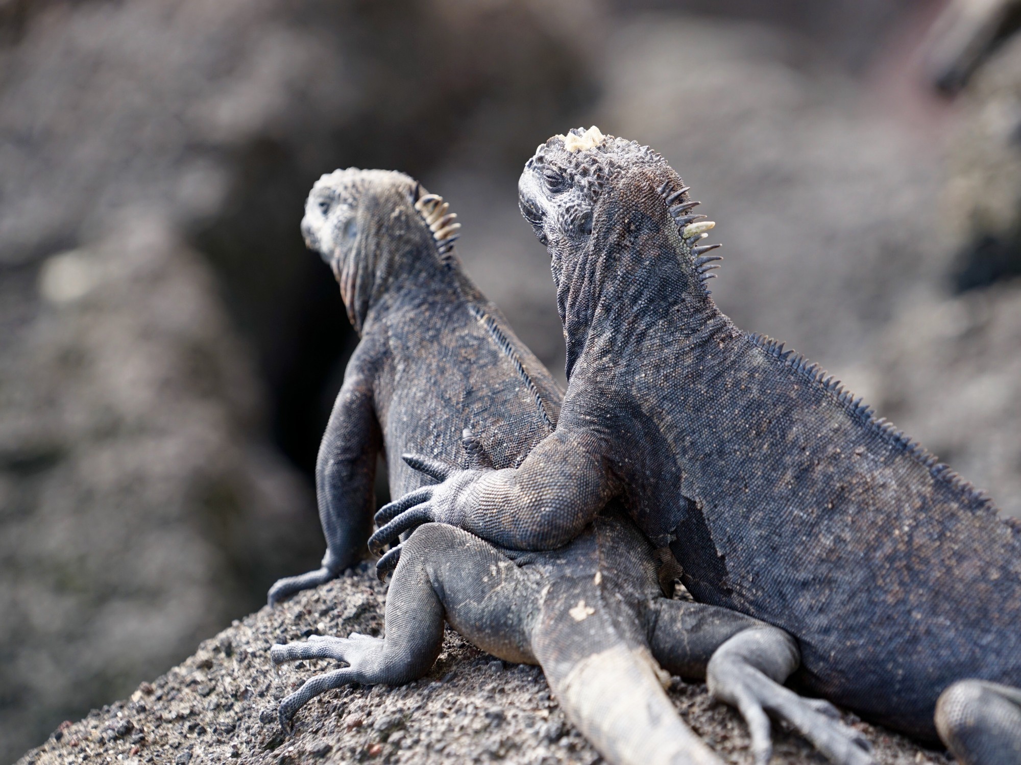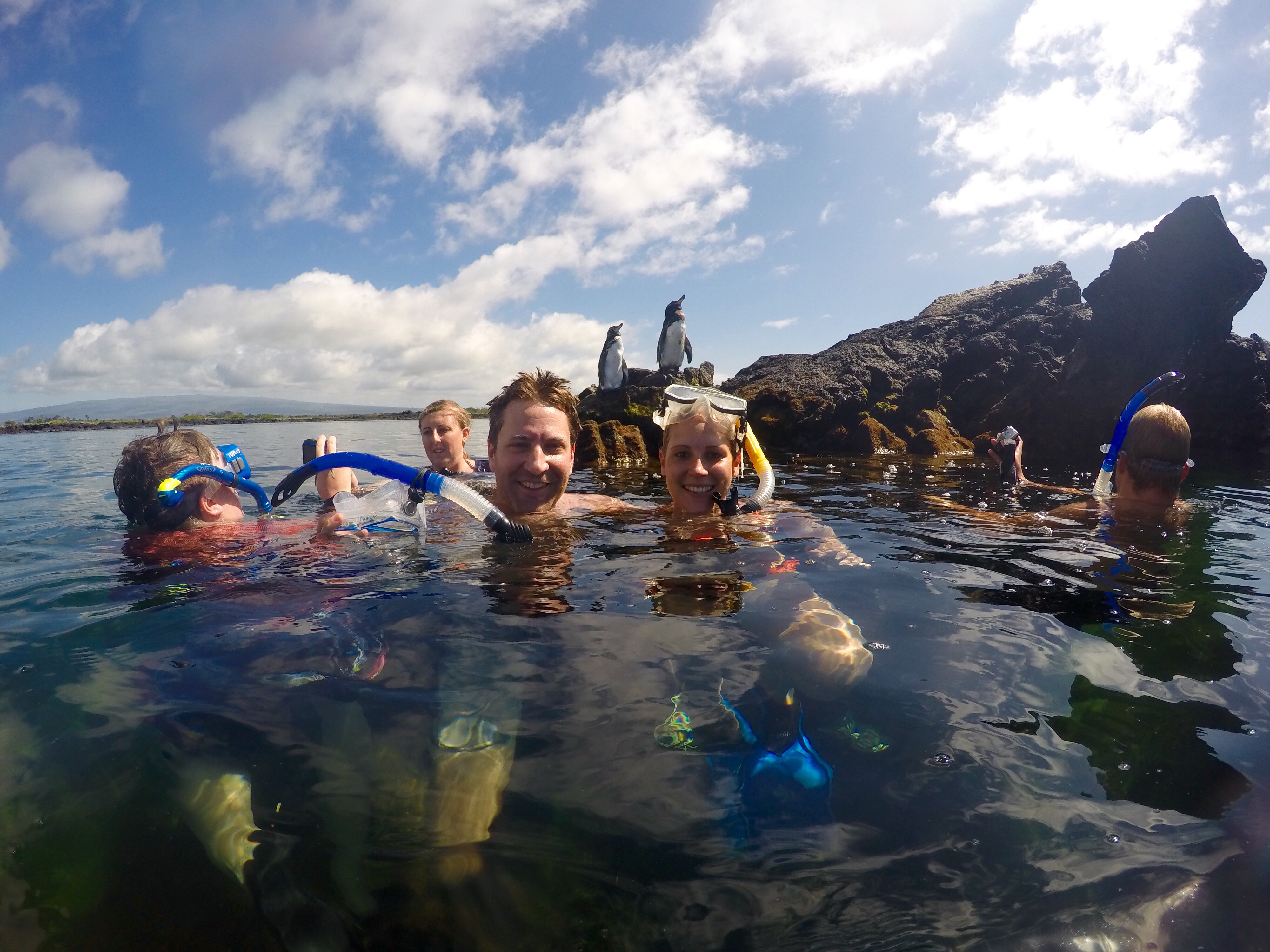 Galapagos, das ist wie Nutella auf einem Lachsbrötli, es ist dieser spezielle Mix aus traumhafter Landschaft und einer unglaublichen Vielfalt an Tieren und Pflanzen, welche Steffi & Pauli geniessen durften. Es ist das beste vom besten und das absolute Highlight der bisherigen Reise! Während sich Steffi ganz besonders an den herzförmigen Kakteen erfreute, beeindruckten Pauli die Ruhe und Gelassenheit der unzähligen Leguane, welche sich hier ganz frei bewegen. Die grandiose Reise nahm ihren Anfang auf Santa Cruz, der Hauptinsel. Bereits auf dieser Insel können diverse Naturerlebnisse bewundert werden. Schon am Hafen von Puerto Ayora winken einem die Seelöwen zu. Steffi & Pauli konnten es kaum glauben, dass sie sich hier im Paradies befinden. Auf einer speziell dafür ausgerichteten Farm konnten sie den Riesenschildkröten bei der sehr gemächlichen Nahrungsaufnahme in Form von Grashalmen beiwohnen. Eine wunderbare Entspannungsmethode! Auf der landschaftlich besonders eindrücklichen Insel Bartolomé durften die beiden das Werbefoto der Galapagos imitieren. Dieses Bild ist auf praktisch allen Prospekten und Reiseführern zu sehen. Wie im richtigen Leben, kann es auch im Paradies passieren, dass es einmal etwas ungemütlich wird. So geschehen auf der Rückfahrt von der Insel Bartolomé. Die Kräfte der stürmischen See hinterliessen besonders bei Steffi unschöne Spuren. Spätestens am Abend beim gemeinsamen Hummer-Essen mitten auf der Strasse war diese Szene jedoch längst wieder vergessen. Die Insel Seymour Norte besticht in erster Linie durch zahlreiche Vogelarten. Da in diesem Jahr der El Niño-Effekt besonders ausgeprägt ist, fehlt den Vögeln die Nahrung. Dennoch konnten die beiden den bekannten Blaufuss-Tölpel erblicken. Es gibt ihn also doch. Die vergangenen zwei Tage weilten die zwei noch auf Isabela, der grössten Insel des Archipels. Auf der Schnorchel-Tour ‚Los Tuneles‘ erlebten sie auch noch die Welt unterhalb der Wasseroberfläche. Die Wasserratte Steffi bewegte sich schon nach ein paar Sekunden wie ein kleiner Seelöwe. Bei Pauli hingegen dürfte die Hoffnung auf einen Synchronschwimm-Pokal längst verloren sein. Besonders beeindruckend war der geologische Aspekt der Unterwasserwelt. Da die Lava hier vor tausenden von Jahren direkt ins Meer floss, bildeten sich zahlreiche tunnelartige Formen, welche heute vielen Wassertieren einen idealen Lebensraum bieten. Neben den teils gigantischgrossen Meeres-Schildkröten hausen hier auch kleine Pinguine und sogar Seepferdchen. Hier konnten Steffi & Pauli wirklich alles hautnah erleben, traumhaft schön und absolut einmalig! Mit dem Besuch der Galapagos-Inseln endet auch ihre Ecuador-Rundreise. Die zwei Abenteurer reisen morgen weiter nach Easter Island. An dieser Stelle auch ein ganz herzliches Dankeschön an die zahlreichen Kommentare, welche wir immer sehr gerne lesen!