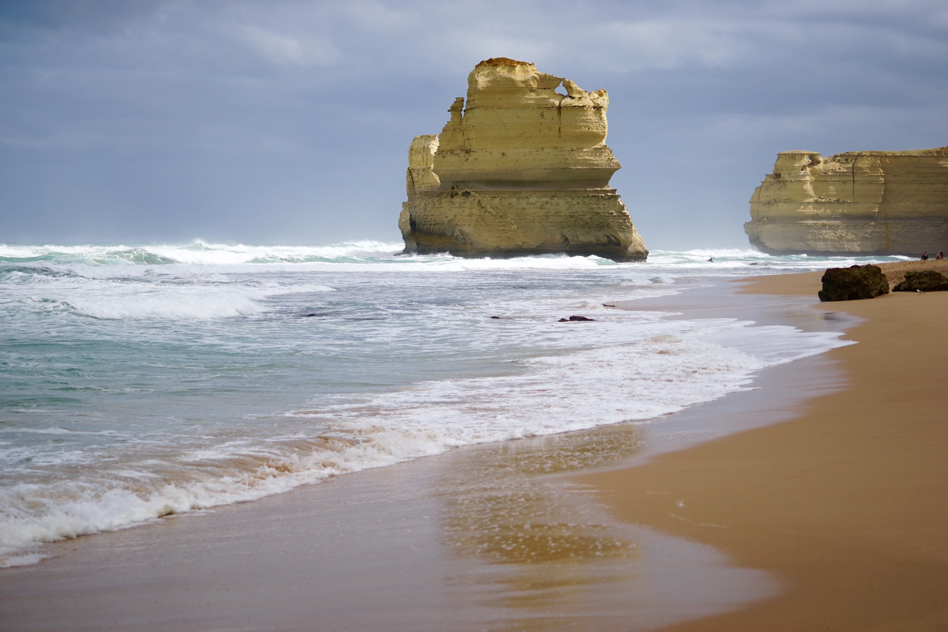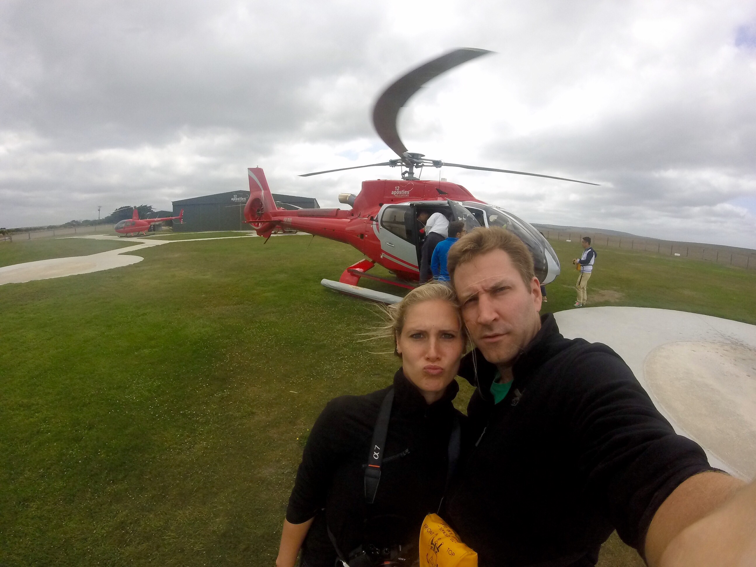 Die etwas ältere Dame war sichtlich nervös, so nervös, dass sie Pauli’s Knie schon von Beginn weg mit ihren kühlen Fingern umklammerte. Als sie kurz darauf den Piloten noch um eine Tüte bat, you never know, wurden auch die restlichen Passagiere nervöser, denn sie befanden sich mittlerweile kurz vor dem Take-off. Dank Denis & Urs durften Steffi & Pauli die besten 15 min Australiens erleben: Die 12 Apostel mit dem Helikopter aus der Luft zu bestaunen war ein besonderes Highlight! Nicht nur die Steinsformationen waren eindrücklich, ein Abenteuer für sich war der Flug selbst. Aufgrund der an diesem Tag vorherrschenden Windverhältnisse schüttelte und rüttelte es äusserst intensiv. Steffi hielt ihre Kamera in der einen und den Halterungsbügel in der anderen Hand. Währenddessen versuchte Pauli mit Go Pro und Handy nicht nur die Landschaft zu fotografieren, sondern vor allem auch ein paar Selfies zu klicken, insbesondere auch mit der älteren Dame, zur Ablenkung versteht sich. Nach 15 min setzte die Maschine wieder sanft auf, die Tüten blieben glücklicherweise unbenutzt. Nach New South Wales, Queensland und South Australia war Victoria bereits der vierte der sieben Staaten Australiens, welchen Steffi & Pauli auf ihrer Australienreise besuchten. Nach der ‚Great Ocean Road‘ und den Erlebnissen der dort zu sehenden ’12 apostles‘ schätzten sie sich glücklich, in Melbourne ein paar Tage zu bleiben.