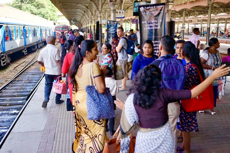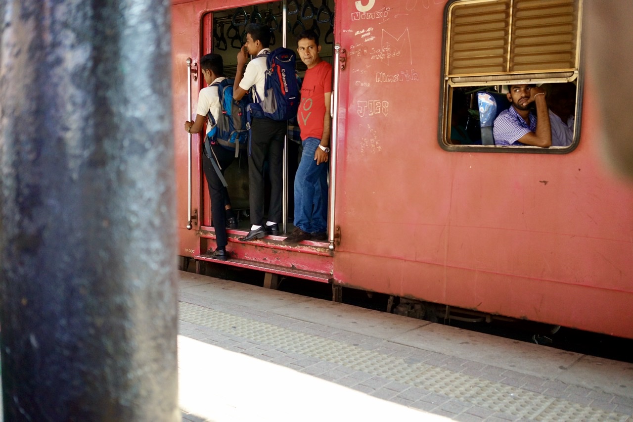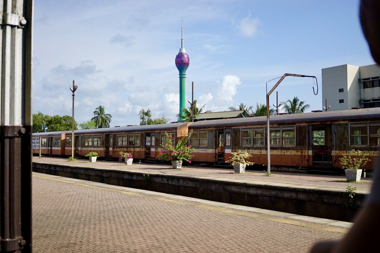 Pauli macht sich selbstverständlich sofort daran, herauszufinden, wo sich ein entsprechendes Ersatzgerät finden lässt. Da sich Steffi & Pauli derzeit in Kandy tummeln, der zweitgrössten Stadt Sri Lankas, besteht durchaus eine gewisse Wahrscheinlichkeit, dass es hier auch sogenannte offizielle Service Provider von Apple gibt. Doch nach kurzer Recherchearbeit findet Pauli heraus, dass in ganz Sri Lanka nur drei solche Shops existieren, welche sich allesamt in Colombo befinden, der Hauptstadt Sri Lankas. So unternehmen Steffi & Pauli einen Tagesausflug in den Südwesten der Insel. Als Transportmittel wählen die beiden den Zug, nicht irgendeinen, sondern den ‚Blueline Express‘. Im ‚Royal Saloon‘, der noch etwas besseren 1. Klasse, also dem Besten vom Besten was Sri Lanka in Sachen Zügen zu bieten hat, begeben sich Steffi & Pauli um 6 Uhr morgens auf die 2.5 stündige Reise nach Colombo. Schliesslich gönnt sich man & frau etwas, wenn die Grundbedürfnisse angeschlagen sind😉. Der Zug setzt sich pünktlich in Bewegung und so dürfen sich die beiden schon nach kurzer Zeit den ersten Teil von ‚Harry Potter‘ (Stein der Weisen) auf einem der beiden Bildschirme angucken. Aber auch die Landschaft, welche im etwa 60 km/h fahrenden Zug an den beiden vorbeirüttelt, ist beeindruckend. Da sich Kandy auf knapp 500 m.ü.M. befindet, schlängelt sich der Zug durch die kurven- und hügelreiche Szenerie ins Tal nach Colombo hinunter. Praktisch gleichauf wie Harry Potter zum Schluss seinen Stein in den Händen hält, kommen die beiden im Herzen von Colombo an. Da Freitag ist, herrscht besonders viel Verkehr. Ganze Menschenmassen möchten übers bevorstehende Wochenende gerne zu ihren Familien in die übrigen Landesteile zurückkehren.