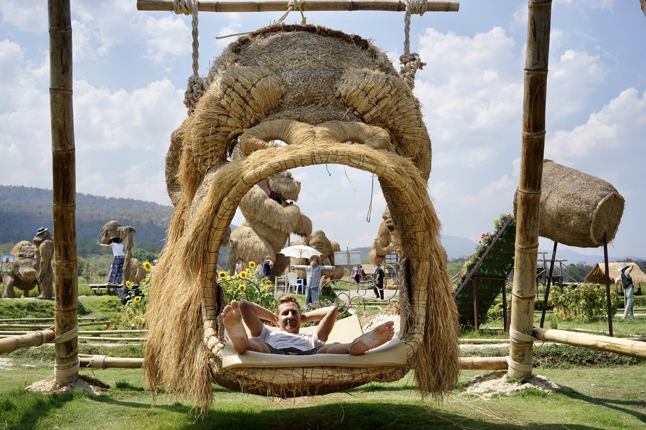 Zwischen dem vielen Essen und Trinken ist dann auch wieder Erholung angesagt… und so besuchen die zwei Schlemmer das auch bei den Lokalen sehr beliebte Naherholungsgebiet namens ‚Huay Tuen Tao’, wo sie völlig unerwartet auf King Kong treffen. Auch die anderen Tiere aus Stroh begrüssen die beiden freundlich und lassen sich auch ganz geduldig fotografieren. Noch ganz froh vom vielen Stroh und nicht verkohlt, nein erholt reisen Steffi & Pauli weiter zum nördlichen Namensvetter Chiang Rai.