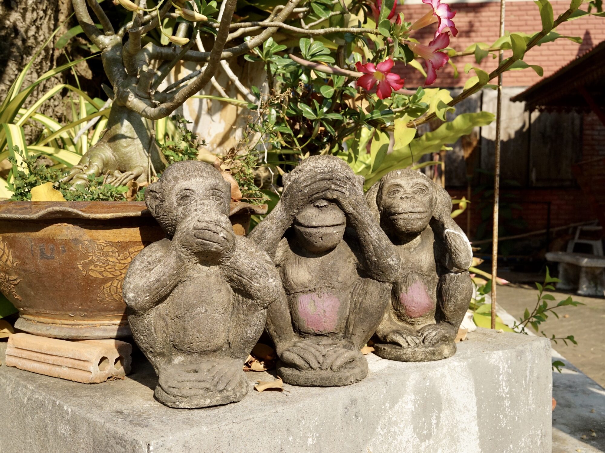 ‚Life is easy‘ – der Gründer der biologischen Farm in der Nähe von Chiang Mai im Nordosten Thailands bringt es auf den Punkt. In seinem TED-Talk erklärt er, wie sich sein Leben nach einem Grundsatzentscheid fundamental verändert hat. Klingt äusserst spannend. Auch Steffi & Pauli sind interessiert und fahren deshalb kurzerhand zu ebendiesem Bauernhof. Wobei Bauernhof etwas kurz greift. Vielmehr handelt es sich bei ‚Pun Pun‘, so der thailändische Name, um eine Lebensgemeinschaft von etwa 20 Personen, deren Ziel es ist, autark zu leben. Sie leben in unterschiedlich grossen Lehmbauten. Um ihr Ziel zu erreichen, versuchen sie möglichst wenig Technik einzusetzen und stattdessen mehr auf die Kraft der Natur zu setzen. So erzeugen zwar Solarzellen den lebenswichtigen Strom, aber bereits bei der Aufbereitung des Wassers kommt ein mit unterschiedlichen Mineralien aufgebautes Filtersystem zum Einsatz, ohne Strom versteht sich. Pauli ist davon besonders fasziniert. Steffis Interesse wiederum wird im Haus zur Gewinnung und Aufbewahrung der Samen all der eingesetzten Pflanzen geweckt. Denn die Samen der rund 30 Pflanzenarten sind die Grundlage des Lebens, nicht nur ihrer Gemeinschaft, sondern auch des Lebens ganz allgemein. Auch die Reduktion des materiellen Konsums steht im Zentrum. Denn dies führt nur zu einem kleinen und vor allem auch sehr kurzfristigen Glückszuwachs. Soweit, so schön, oder eben schamparschön. Steffi & Pauli schauen sich um, reden mit den Bewohnern, von welchen einige auch nur für ein paar Wochen da leben und entschliessen sich……….. wieder zurück ins Schlaraffenland namens Chiang Mai zu fahren.