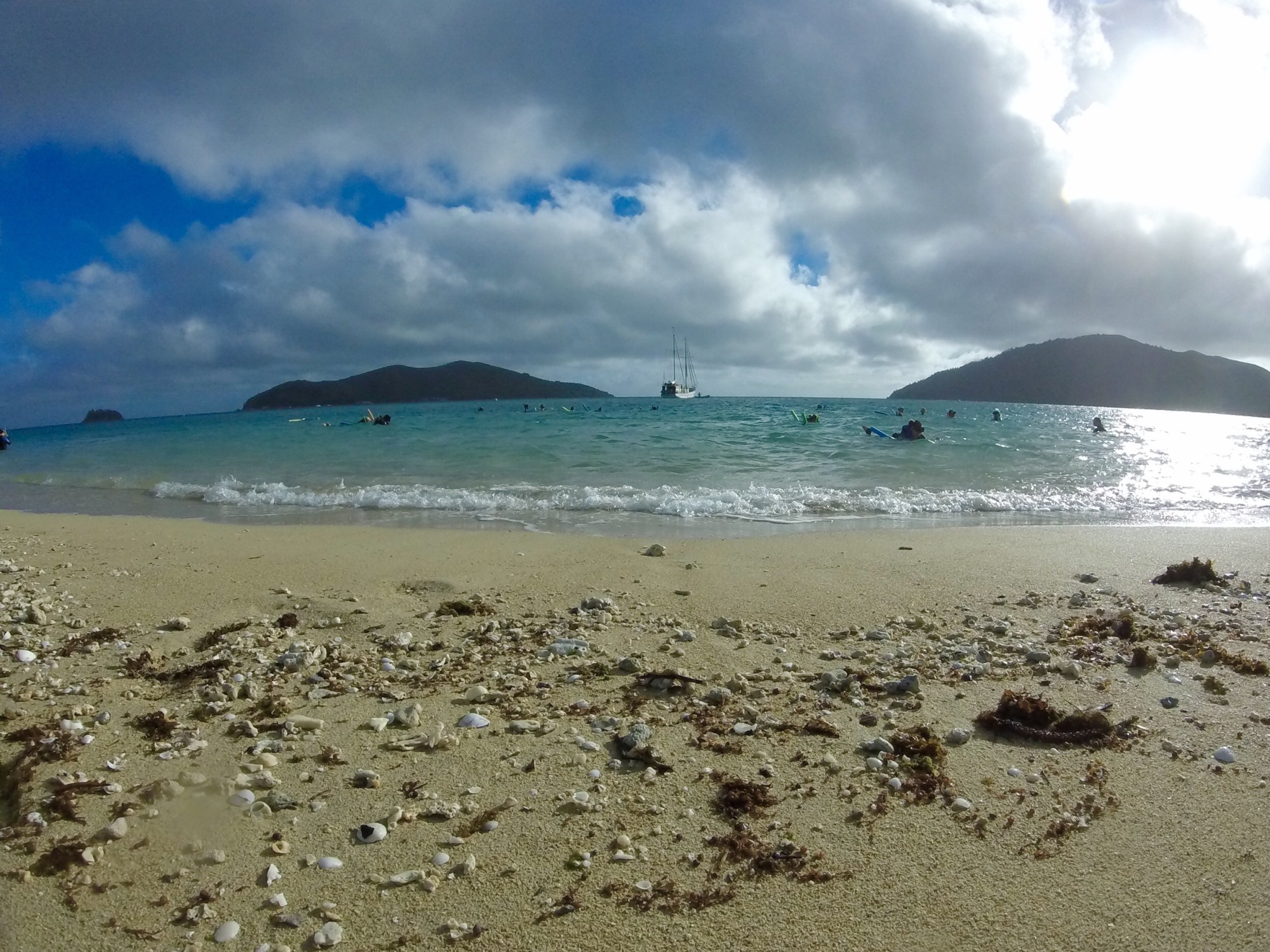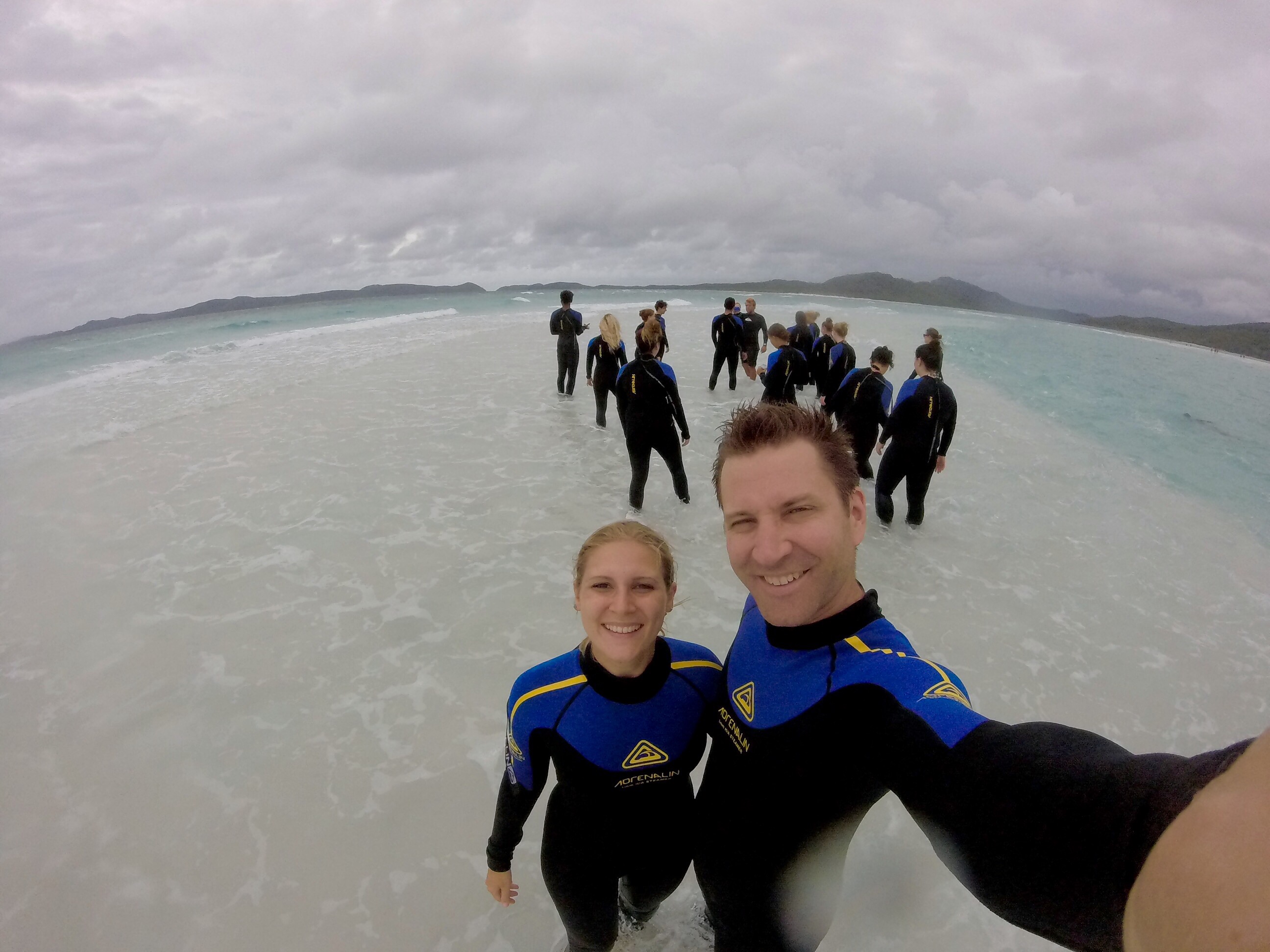 Wie sich der kleine Clownfisch Nemo wohl gefühlt haben muss, als Steffi & Pauli über ihn und seine Familie schnorchelnd hinweggeschwebt sind? Wie vieles andere auf dieser Welt wird auch diese kleine Szene für immer ein Rätsel bleiben. Aber wie kamen Steffi & Pauli überhaupt in diese Situation? Wie vieles andere auf dieser Welt begann auch dieses Abenteuer mit einer Idee. Der Funken sprang während einer Schiffsfahrt auf den Galapagos-Inseln. Eine junge Australierin schwärmte damals von zuckerweissen Sandstränden, türkisblauem Wasser und der unvergesslichen Schöhnheit eines kleinen Fleckleins in ihrer Heimat. Die Rede war von den Whitsunday-Islands, welche unter anderem auch Teil des weltbekannten ‚Great Barrier Reef‘ sind. Steffi & Pauli waren sofort begeistert und passten kurz darauf ihre Reisepläne an. Zusammen mit 30 anderen Backpacker und 4 Crewmitgliedern stachen sie deshalb am letzten Wochenende auf der ‚New Horizon‘ in die ruhige See. Sprichwörtlich neue Horizonte eröffneten sich den beiden schon kurz nach Abfahrt, denn die restlichen Abenteurer waren allesamt etwa 10 Jahre jünger und kamen fast ausschliesslich aus dem Mutterland Great Britain. Vom Motor angetrieben und mit Partymusik berieselt tukelte die auch mit Segeln ausgerüstete ‚New Horizon‘ zur ersten Bucht, wo sich die bereits mit ‚Goon‘, einem australischen Billigwein, aufgemunterten Passagiere ein erstes Mal ins paradiesische Wasser stürzen konnten. Diese erste Bucht bildete für Steffi & Pauli auch zugleich den Ankerort für ihre erste Nacht auf See. Nach nicht gerade besonders viel Schlaf (Tagwach war um 06:30 Uhr und ja, besonders früh gingen Steffi & Pauli auch nicht in die Koje) wurde ein ausgiebiges Frühstück serviert. Aufgrund der am nächsten Morgen sehr rauhen See beschäftigte dieses jedoch nur bei den wenigsten den Verdauungstrakt. Stattdessen gelangten unzählige halbverdaute Toastbrote und Frühstückscerealien zusammen mit einem Pulverkaffeegemisch in die Tiefen des pazifischen Ozeans. Verständlicherweise waren alle Reisenden und vor allem auch die stets bemühte Reinigungstruppe äh Crew froh, dass sich das Wahrzeichen der Whitsunday Islands schon kurz darauf in Sichtweite befand. Da war er nun, der als einer der schönsten Sandstrände der Welt betitelte ‚Whitehaven Beach‘. Unglaublich fein fühlte sich der schneeweisse Sand an, wirklich wie Zucker, fast schon Puderzucker. Durch die Schönheit des Strandes wahrhaftig in Ekstase versetzt, schrieb die Gruppe den Namen ihres temporären Zuhauses in ‚Menschenschrift‘. Steffi & Pauli symbolisierten dabei den Buchstaben E von ‚New Horizon‘. Nicht nur die schreibfreudige Schiffstruppe kam auf interessante Ideen, sogar die amerikanische Weltraumbehörde NASA hat sich für die Herstellung ihrer Weltraumkapseln-Fenster extra ein paar Tonnen dieses extrem quarzhaltigen Sandes ‚ausgeliehen‘, gegen fürstliche Bezahlung natürlich. Um sich gegen allfällige Quallen-Stiche zu schützen, aber auch der hohen UV-Strahlung wegen, mussten sich die mittlerweile wieder erholten Schiffsjünglinge einen Schwimmanzug anlegen. Auch für das anschliessende Schnorcheln kamen die hautengen Anzüge erneut zur Anwendung. Nemo und seine Familie haben sich sicher köstlich amüsiert, als sie diese komisch aussehenden Gestalten über sich schweben sahen.