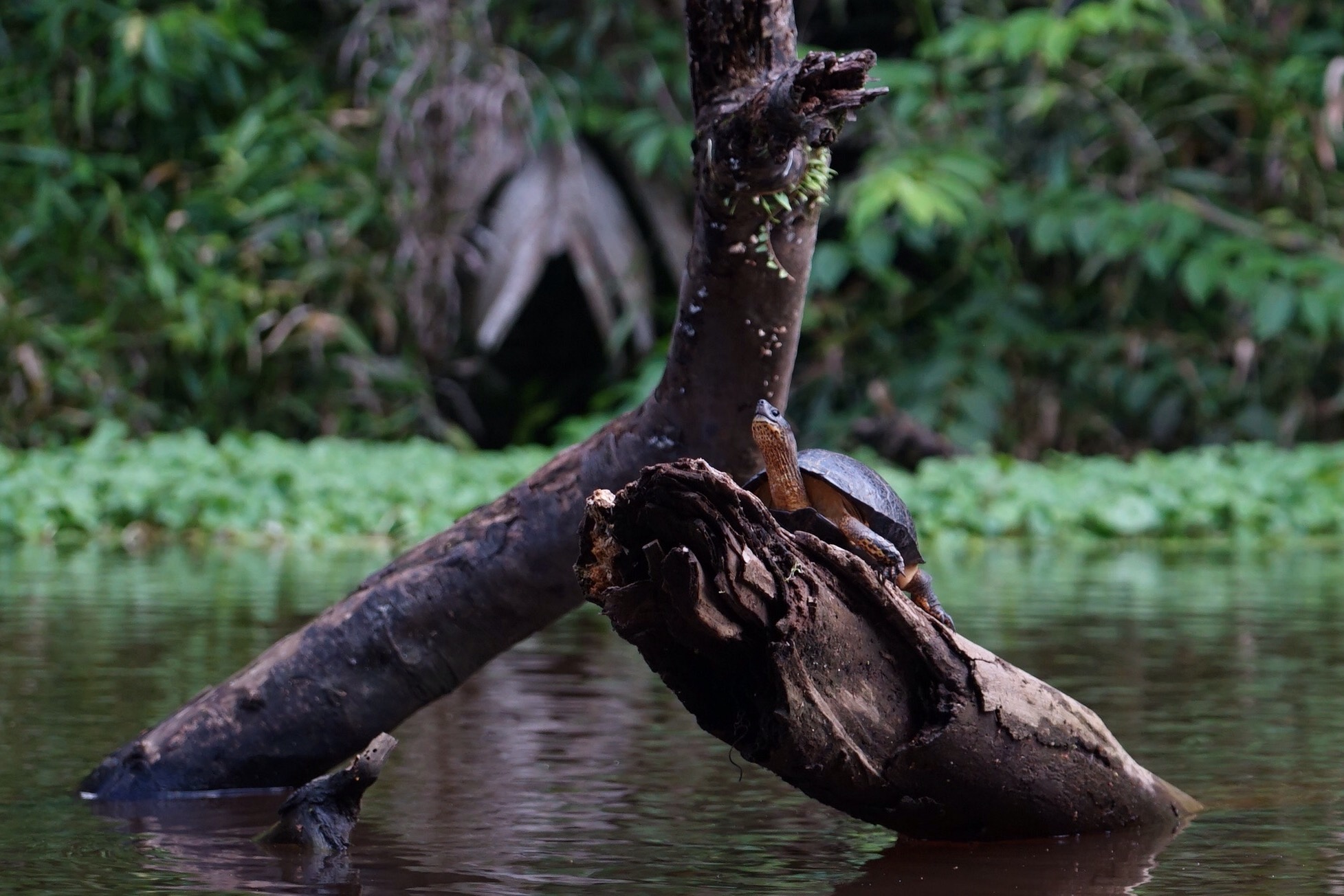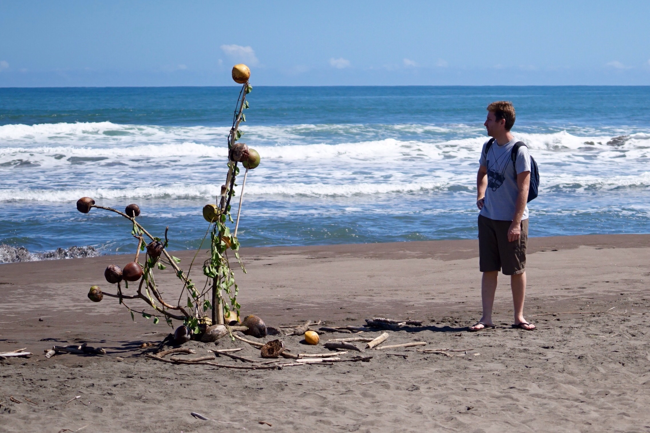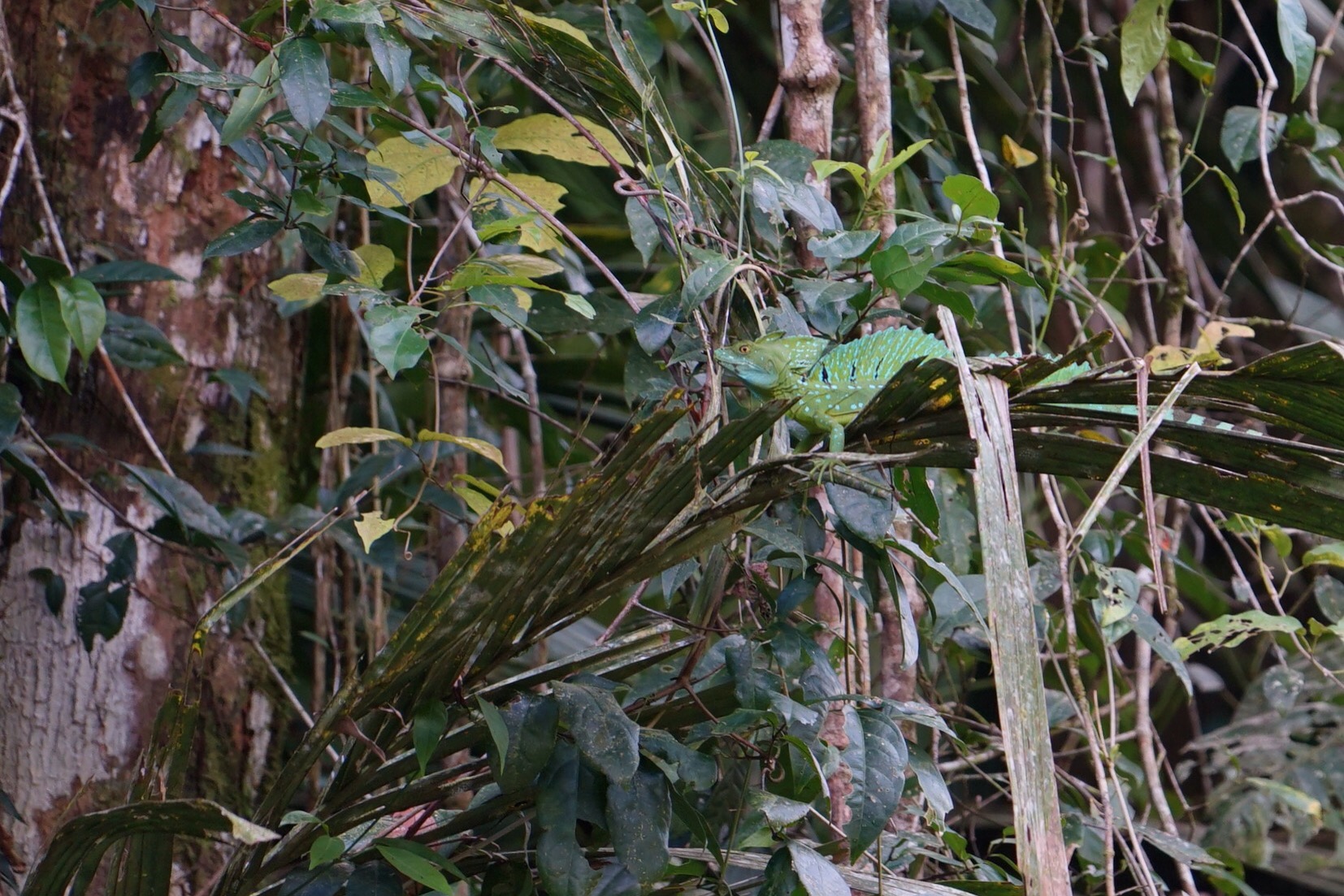 „I had the time of my life…“ Diesen Song summte Ever, der überaus freundliche Angestellte von unserer Bleibe namens Toucan & Tarpon, während er heftig in den Boxsack hämmerte. Zum gleich im Anschluss folgenden „My heart will go on“ stemmte er seine selbstgemachten Gewichte in die Höhe. Je höher er als Céline Dion die Stimme anhob, desto kräftiger schien Ever die gemeisselten Steinsformationen in die Höhe zu bewegen. Eine äusserst interessante Kombination, wie übrigens vieles hier im Tortuguero Nationalpark: Eine Mischung aus Ökotourismus und Schnellboot-Birdwatching-Touren. Pauli und Steffi wählten eine Kanu-Tour mit Castor Hunter Thomas, dem berühmt berüchtigten und im Lonely Planet hoch gelobten Tourguide. Mit seinem geschulten Auge entdeckte er alles was im Wasser lag, in den Bäumen hing oder in den Lüften segelte. Steffi fühlte sich mit ihrem Teleobjektiv wie im siebten Himmel und knipste enthusiastisch drauflos. Pauli verliebte sich in einen blauen, riesigen Schmetterling, welcher immer mal wieder vorbeiflog. So verging ein wunderschöner Morgen im paradiesischen Tortuguero.
