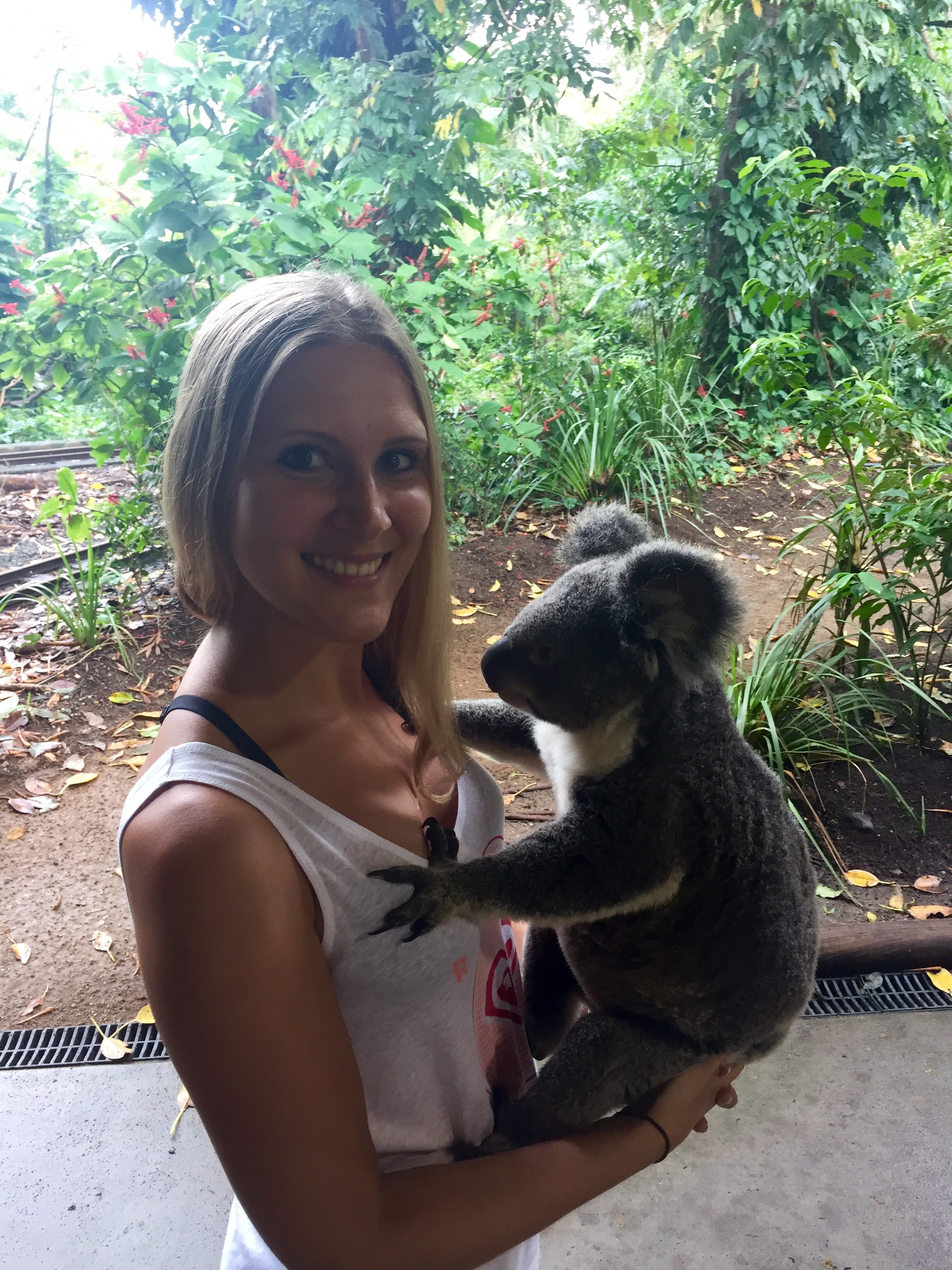Steffi & Pauli reisten zwar nicht mehr wie in Neuseeland in einem Campervan, sondern benutzten für die rund 1500 km lange Fahrt nach Brisbane einen Kleinwagen, Marke Hyundai, Modell i20. Damit fehlte zum Gypsy nicht mehr viel. Denn genau wie der Test-Fahrbericht der NZZ vom 8. Juli 2015 über dieses Fahrzeug erklärt, fühlten sich die Fahreigenschaften auch unter realen Bedingungen wie folgt an: Schon bei der kleinsten Steigung kam das kleine Motörli, mit gefühlten zwei Pferdestärken, gewaltig unter Leistungsdruck. Pauli war somit gezwungen die manuelle Gangschaltung zu betätigen, wohlgemerkt mit der linken Hand. Dank Steffi’s heilpädagogischen Kräften, hier in Form des motivierenden Gedankenaustauschs mit Pauli, war der korrekte Bewegungsablauf schon bald gefunden. Nach Zwischenhalten in den Hostels von Port Macquarie, Coffs Harbour, Yamba und Byron Bay, wo sich die Wege von Steffi & Pauli mit anderen, ebenfalls Richtung Norden reisenden Backpackern immer wieder kreuzten, landeten die beiden schliesslich in Surfers Paradise, direkt an der wunderschönen Goldcoast gelegen. Wie die Namen verraten, gibt es da nicht nur goldene Sandstrände, sondern eben auch die besten Surf-Wellen, ein wahrhaftiges Paradies auf Erden. So jedenfalls in der Theorie, denn genau an den drei Tagen, wo sich Steffi & Pauli in diesem Paradies ausbreiten wollten, regnete es fast ununterbrochen und war mit etwa 28 Grad auch verhältnismässig kühl. Hauptgrund waren die Auswüchse des Zyklons ‚Winston‘, welcher vor allem auf Fidschi grössere Schäden anrichtete. So beschlossen die beiden Abenteurer den Vergnügungspark ‚Dreamland‘ inklusive dem angrenzenden ‚White Water‘-Wasserpark zu besuchen, die grössten Pärke dieser Art Australiens. Der Regen erwies sich als Vorteil, denn es hatte fast keine anderen Besucher. Steffi & Pauli konnten deshalb praktisch alle Attraktionen beider Parks an einem Tag durchlaufen. Nur jene für die ganz, ganz kleinen Kinder blieben wohl auch sonst an diesem Tag unbenutzt. Das absolute Highlight des Wasserparks war die teuflische Rutschbahn ‚The Wedgie‘. Pauli wagte sich als erster an dieses Ungetüm, während Steffi zuerst die Rolle der Beobachterin einnahm, mit zugegebenermassen leicht beunruhigtem Blick. Kurz nach Pauli liess auch sie sich ins Unheil stürzen. Der Ablauf lässt sich in etwa folgendermassen beschreiben: „Stell dir eine warme Dusche vor… Nun ertönt aus einem nahegelegenen Lautsprecher ein Countdown. Gleichzeitig mit der Null wird der Boden unter deinen Füssen weggezogen und du fällst in die Tiefe… Nach etwa 10 Sekunden ist der Spass vorbei.“ Von all den Adrenalinschüben schon etwas erschöpft und vor allem tropfnass, wagten sich die beiden dann gegen Mittag ins ‚Dreamland‘, wo sie der ‚Tower of Terror II‘ bereits sehnlichst erwartete. Zuerst rasten Steffi & Pauli mit 160 km/h durch einen einem Triebwerk nachempfunden Tunnel. Der höllisch lärmende Wagen wurde anschliessend auf ebendiesen ‚Tower of Terror II‘ hochgeschleudert, das ganze selbstverständlich rückwärts und mit einer kurzen Verschnaufspause auf 100 m Höhe inklusive. Wer schon einmal bei Regen auf der Autobahn die Hand aus dem Fenster gestreckt hat, weiss in etwa, wie es Steffi & Pauli auf den Achterbahnen im ‚Dreamland‘ so erging. Der Besuch des ‚Currumbin Wildlife Sanctuary‘ am folgenden Tag erhöhte dann abermals und ganz besonders Steffi’s Puls. Was sind doch die Koalas für herzige Bärli. Bei deren Blick schmolz Steffi’s kurz zuvor verschlungenes Glace sogar noch ein zweites Mal. Vollgepackt mit Eindrücken konnten sich Steffi & Pauli schliesslich in den zahlreichen Oasen der lokalen Clubszene von Surfers Paradise bis in die frühen Morgenstunden austoben, ein wahrhaftiges Paradies eben!